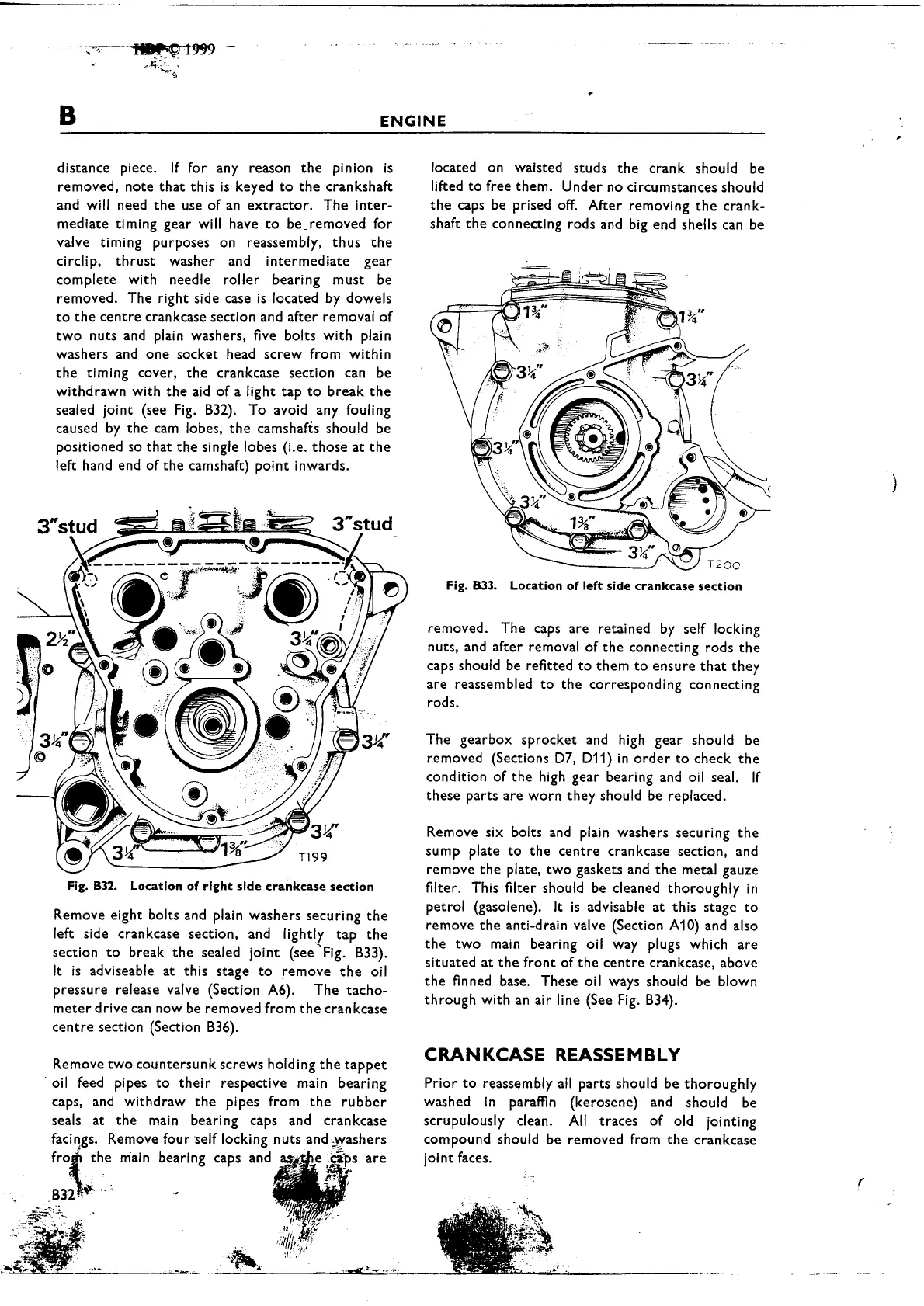 Triumph Trident T150R - Crankcase Reassembly; Location of Right Side Crankcase Section; Location of Left Side Crankcase Section