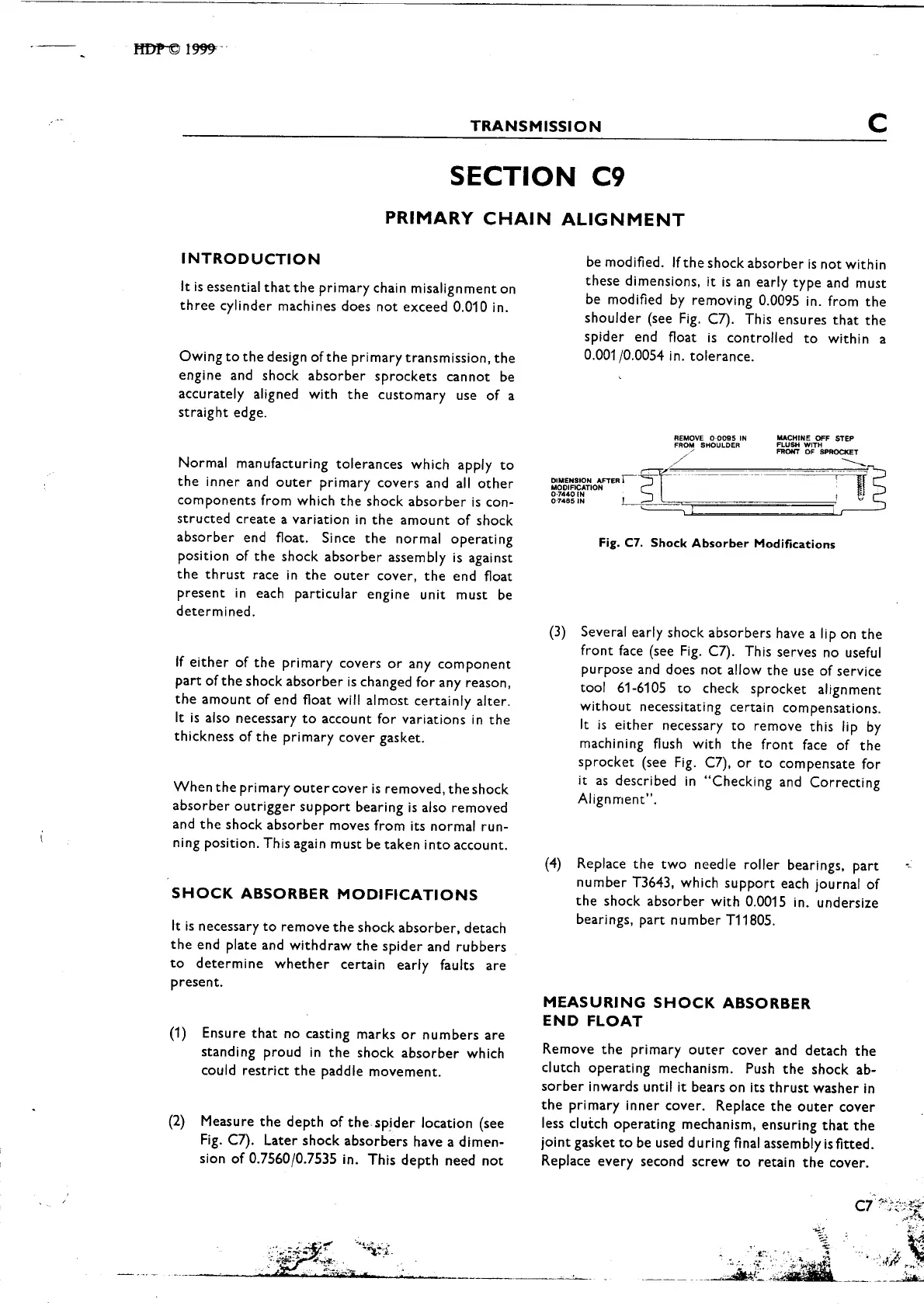 Triumph Trident T150R - Primary Chain Alignment; Shock Absorber Modifications; Measuring Shock Absorber End Float