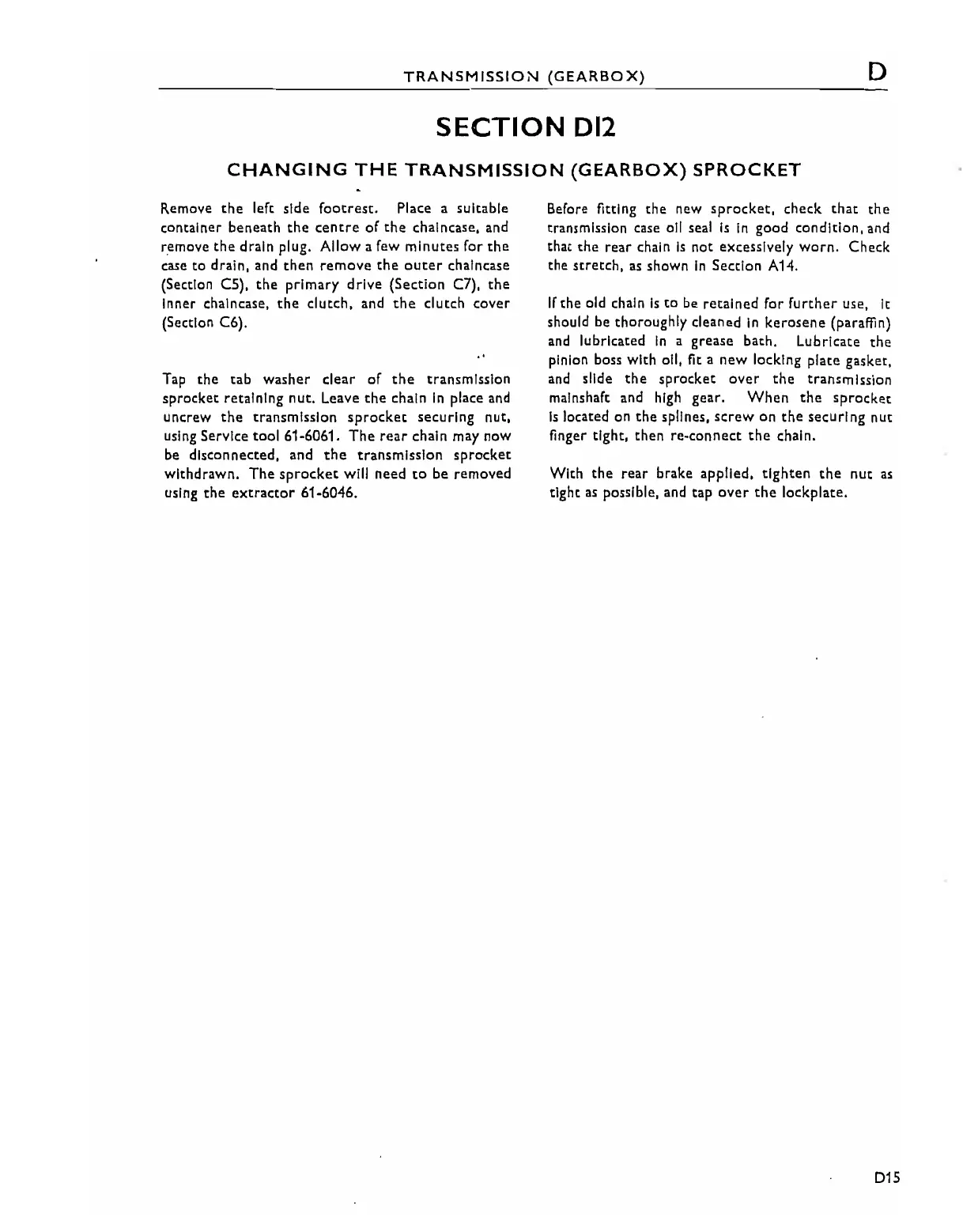 Triumph Trident T160 - D12 CHANGING THE TRANSMISSION (GEARBOX) SPROCKET