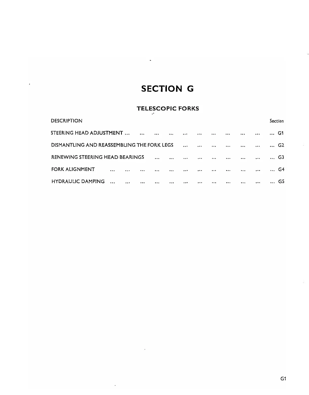 Triumph Trident T160 - SECTION G TELESCOPIC FORKS