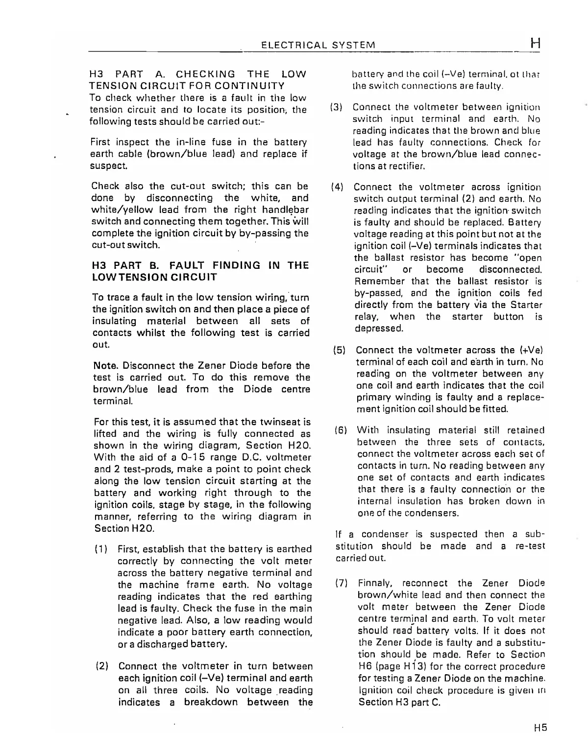 Triumph Trident T160 - Fault Finding in the Low Tension Circuit; Checking the Low Tension Circuit for Continuity