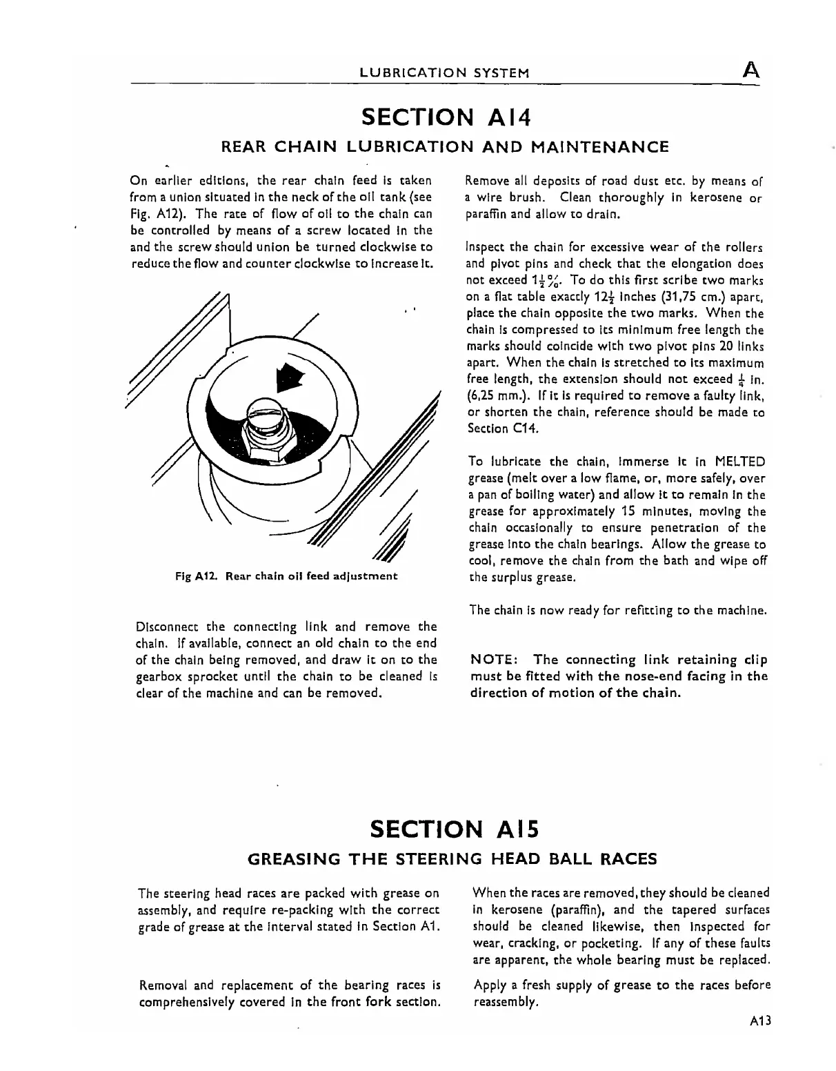 Triumph Trident T160 - A14 REAR CHAIN LUBRICATION AND MAINTENANCE; A15 GREASING THE STEERING HEAD BALL RACES