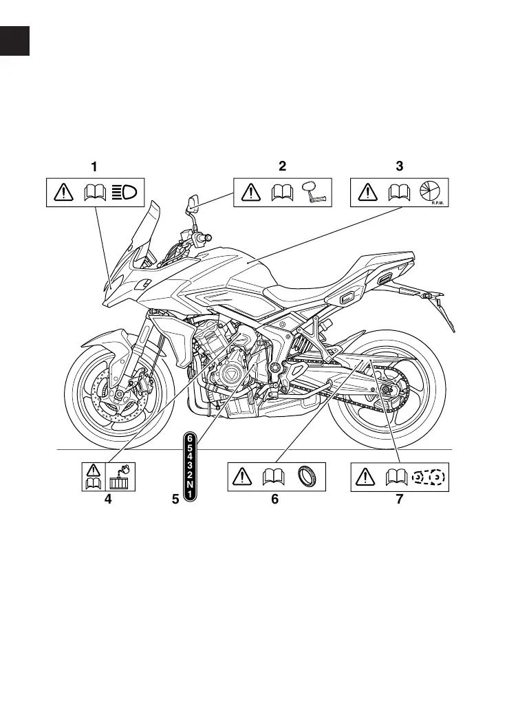motorcycle shown is the Tiger Sport, however all labels are in the same location for