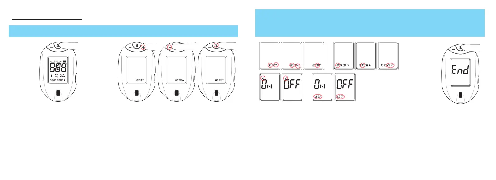 ~ Si el medidor se apaga en cualquier momento durante la configuración, vuelva al paso 1 y comience nuevamente.