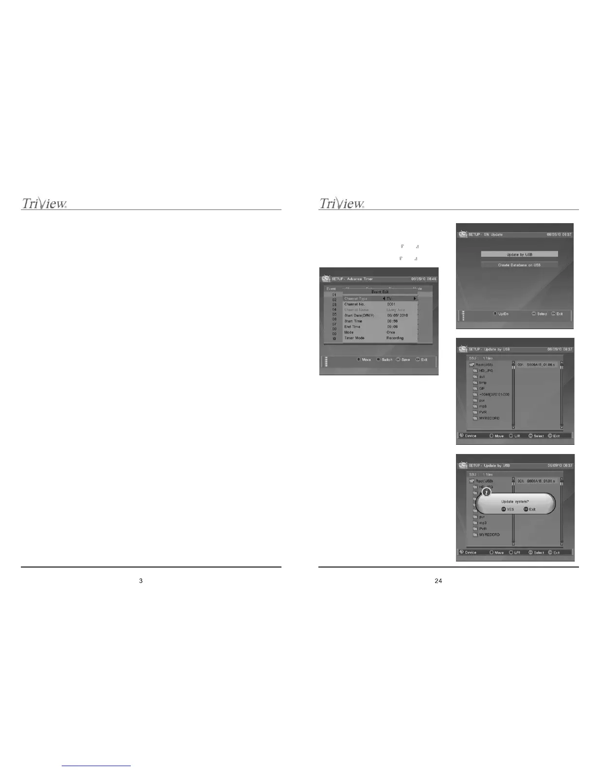 Use this menu sheet to update receivers software