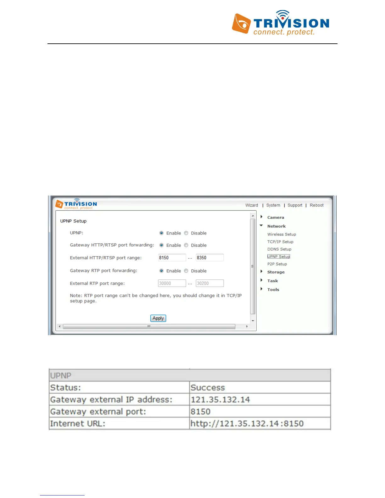 The camera comes from the factory with the UPnP enabled. You can double check by selecting the “UPnP Setup”