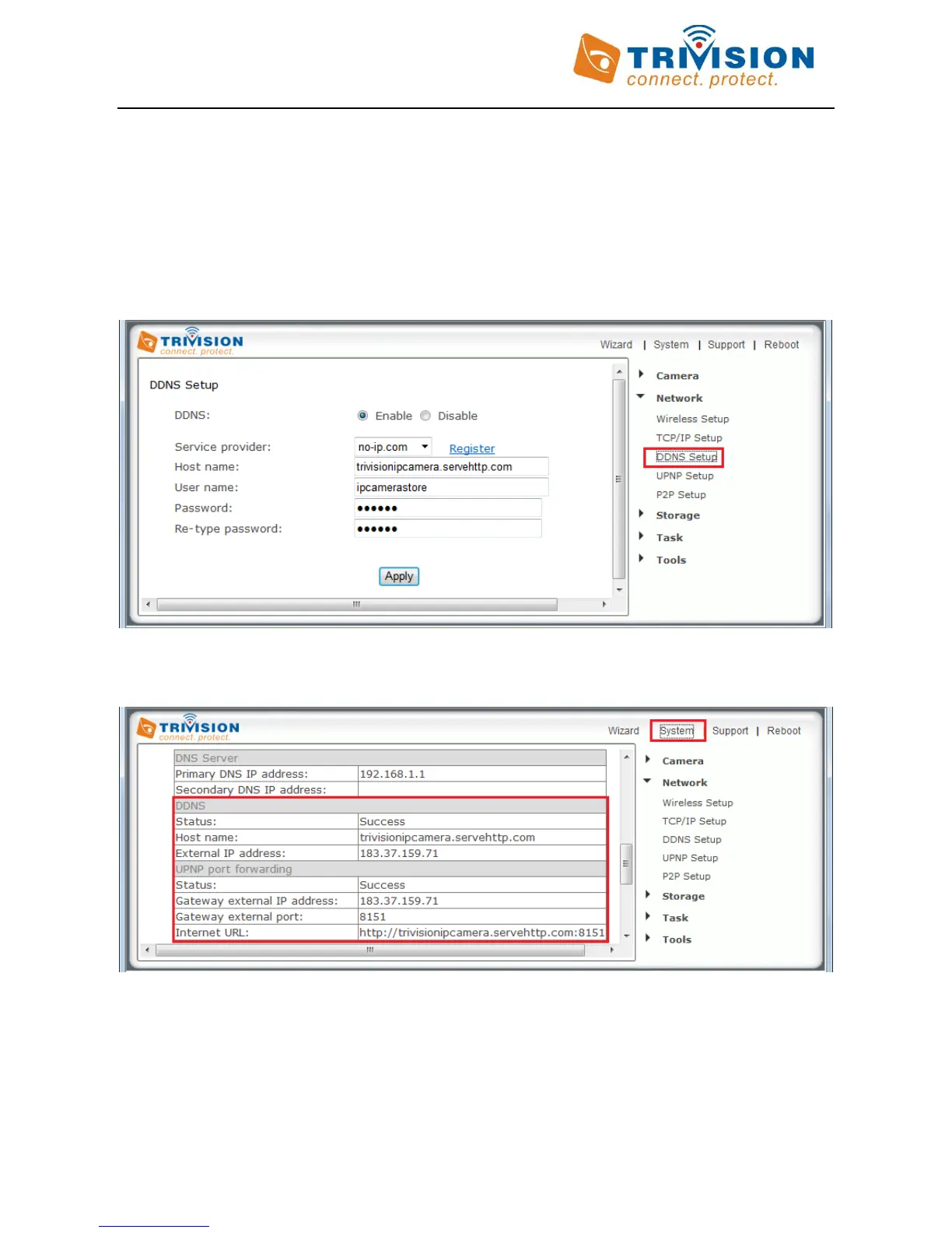 Note: Only 1 single camera per network needs the DDNS setup. This enables access to the entire network.