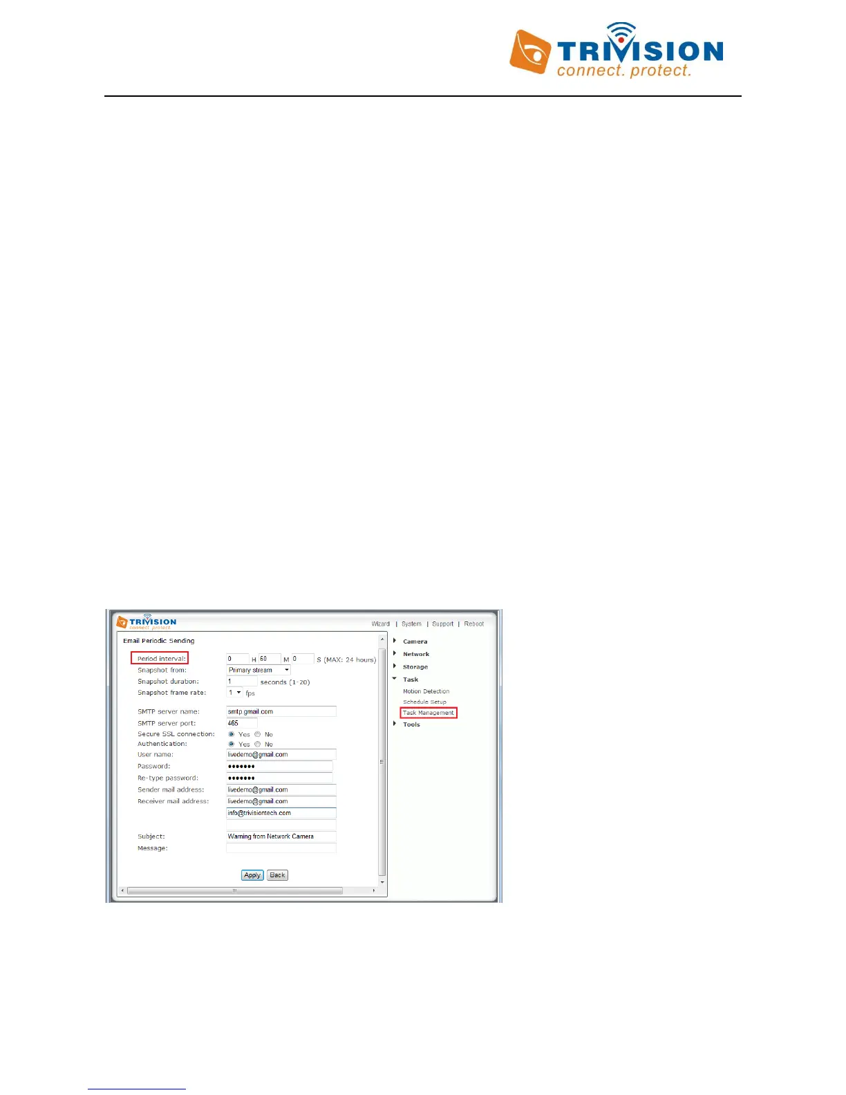 “Email Periodic Sending” menu is very similar to setting up the “Email Alarm Sending”, so it’s not explained here.