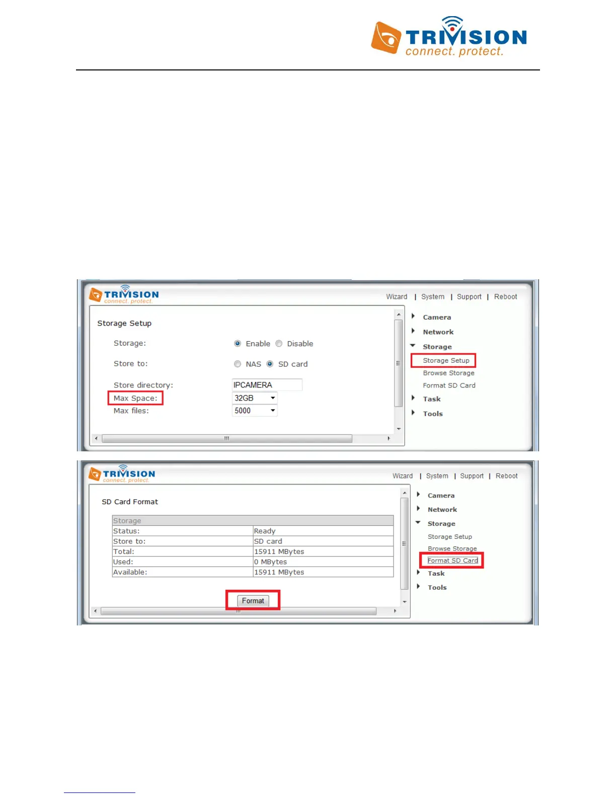 time intervals (Snapshot to Storage Periodically) to take snapshots and store them to MicroSD card or NAS