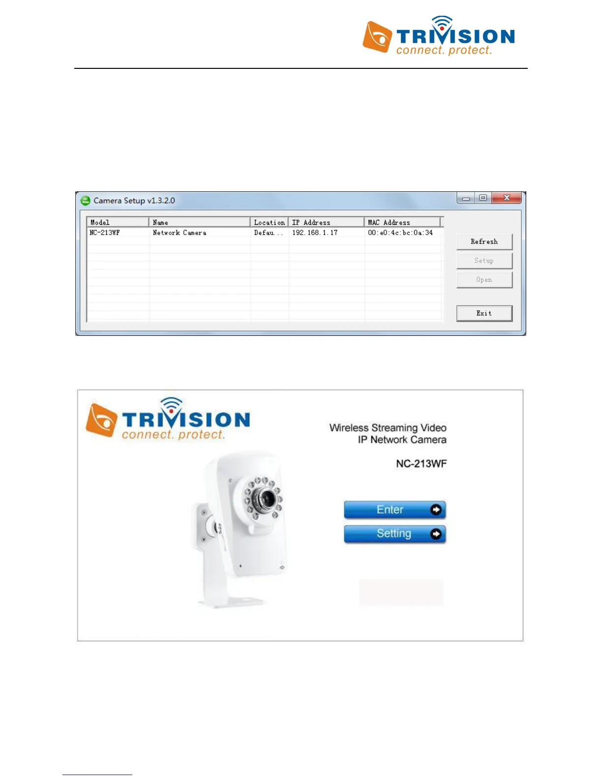 You can use this program to set up cameras but we recommend that you use this program only to find your IP