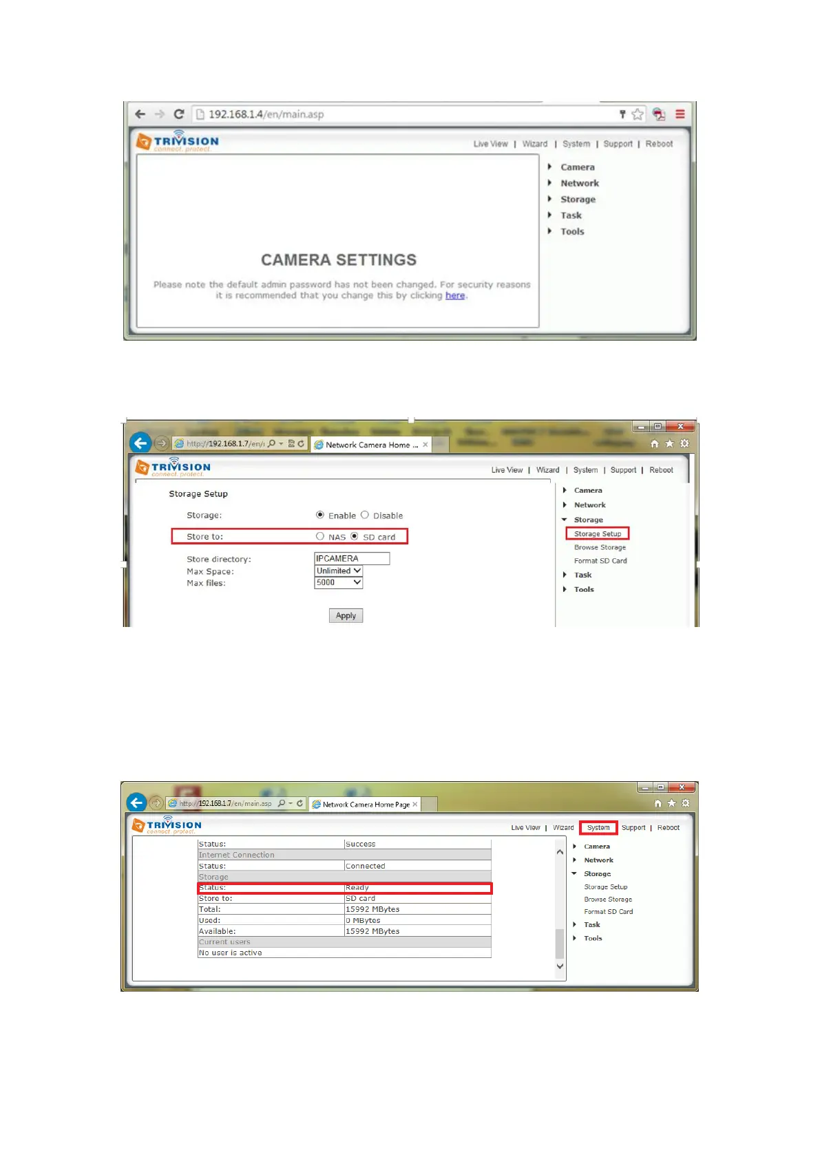 Click “Storage” -- storage setup elect SD card apply to store your setting.