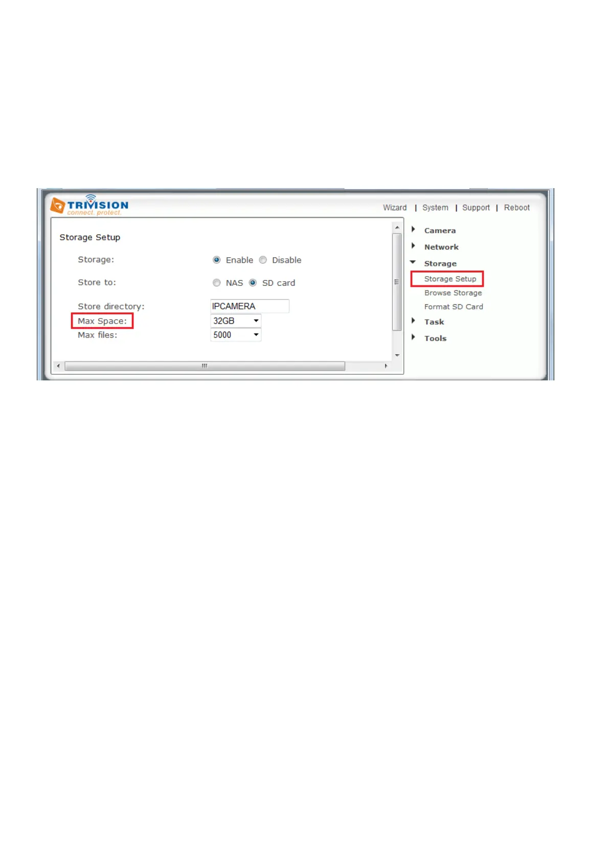 [Max Space] Storage capacity the camera will use on the chosen storage.