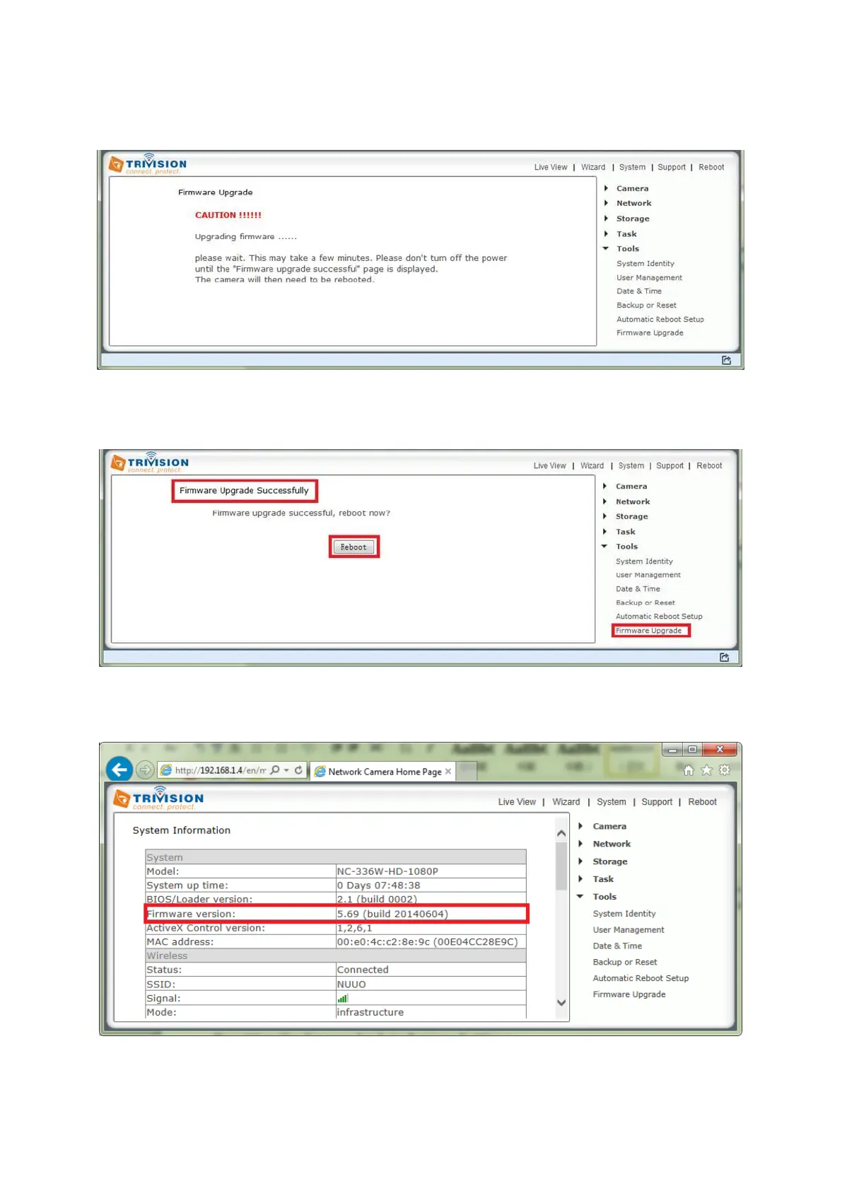 finished and firmware upgrading is in process. Don’t power off or reboot the camera till the message