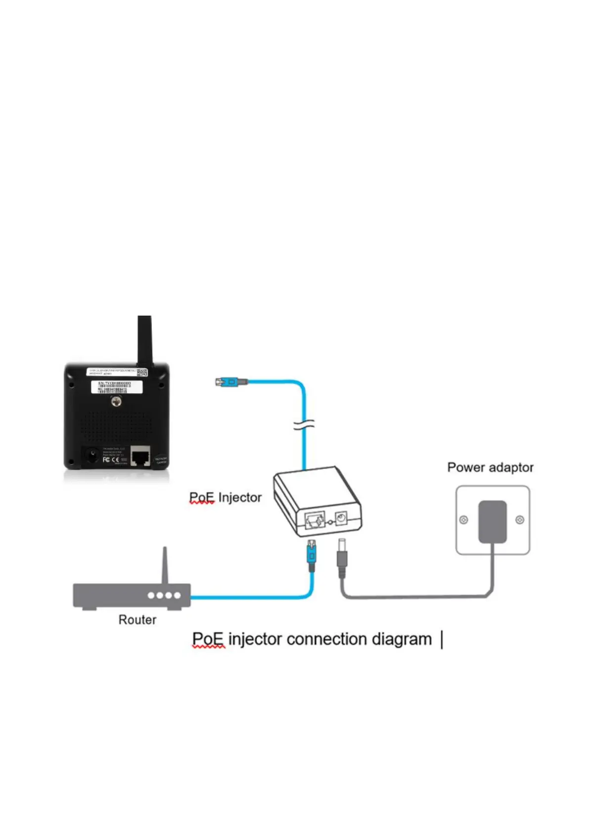 there are also 2 ways to provide PoE power to the camera: You can use a PoE injector, such as the one from