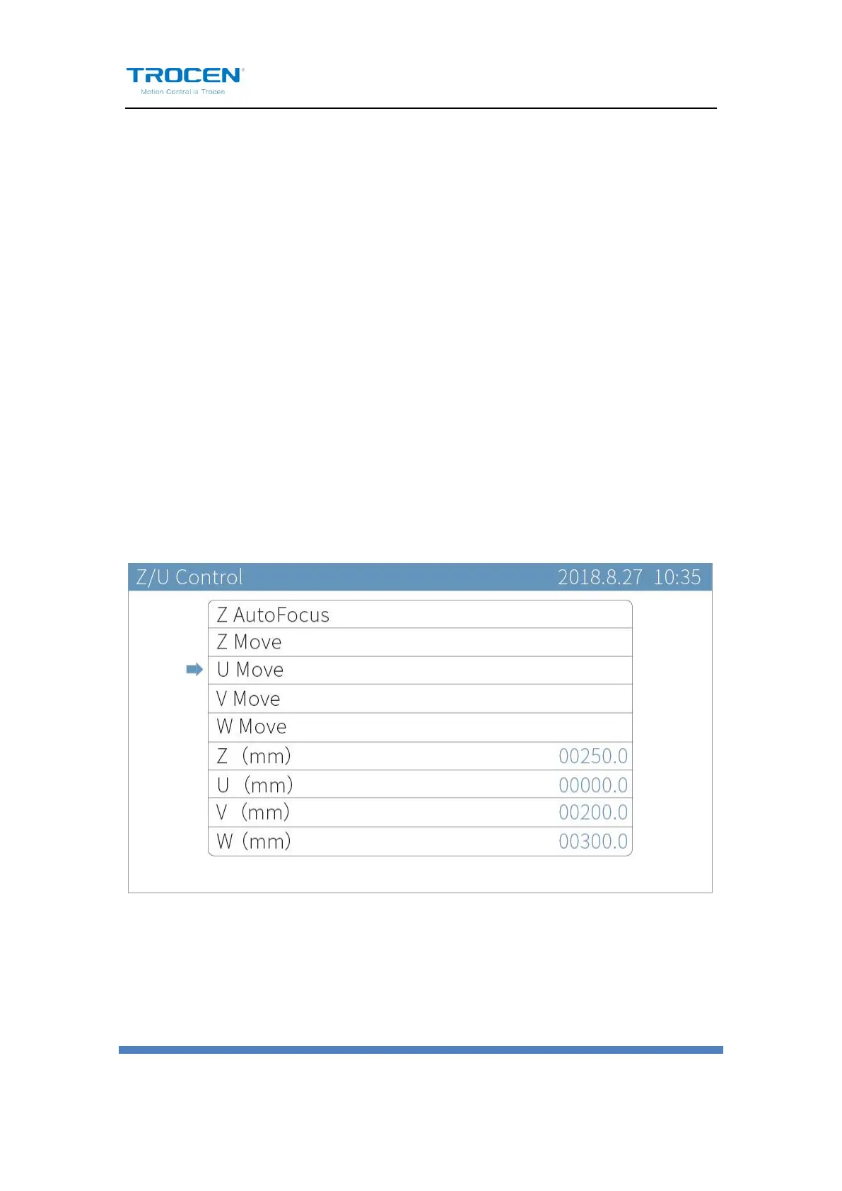 coordinate value. Users can move U axis, but the coordinate of U axis