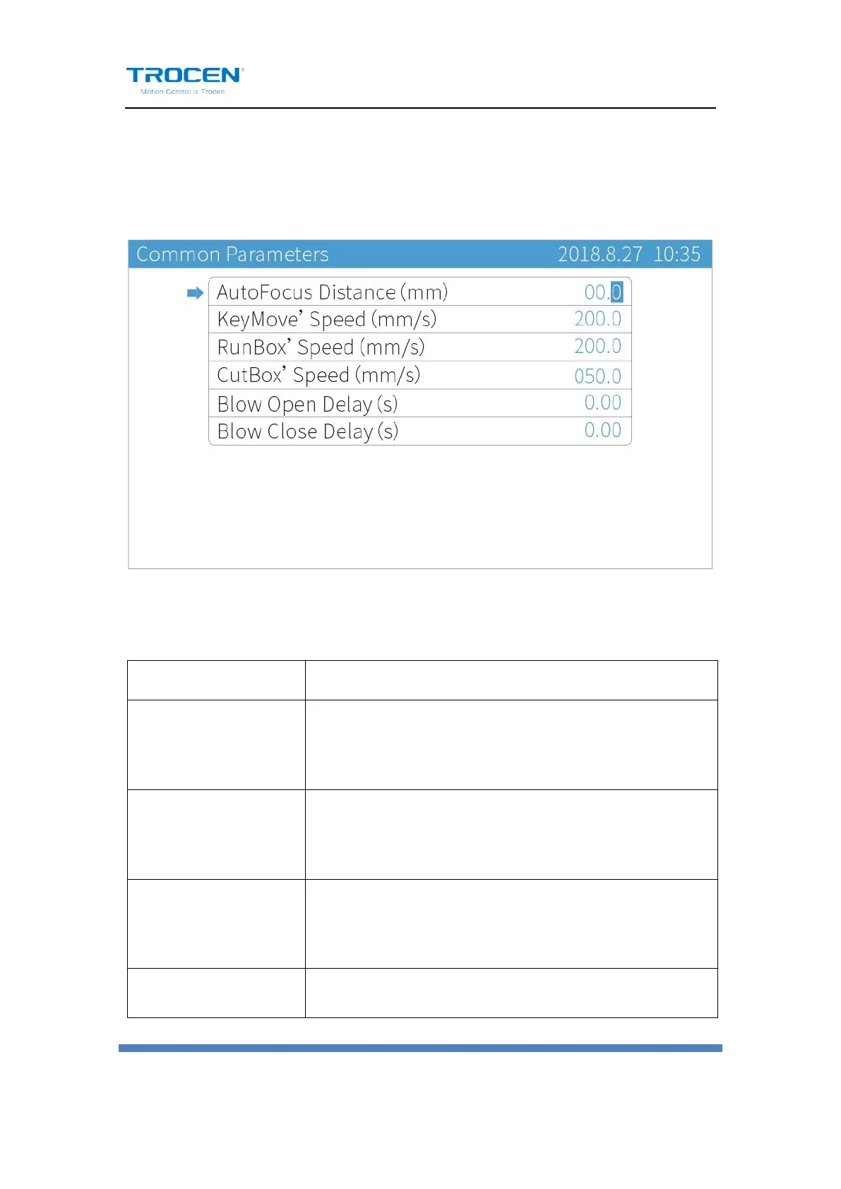 Trocen AWC708C Plus - 6.7.3 Axis Speed Parameters