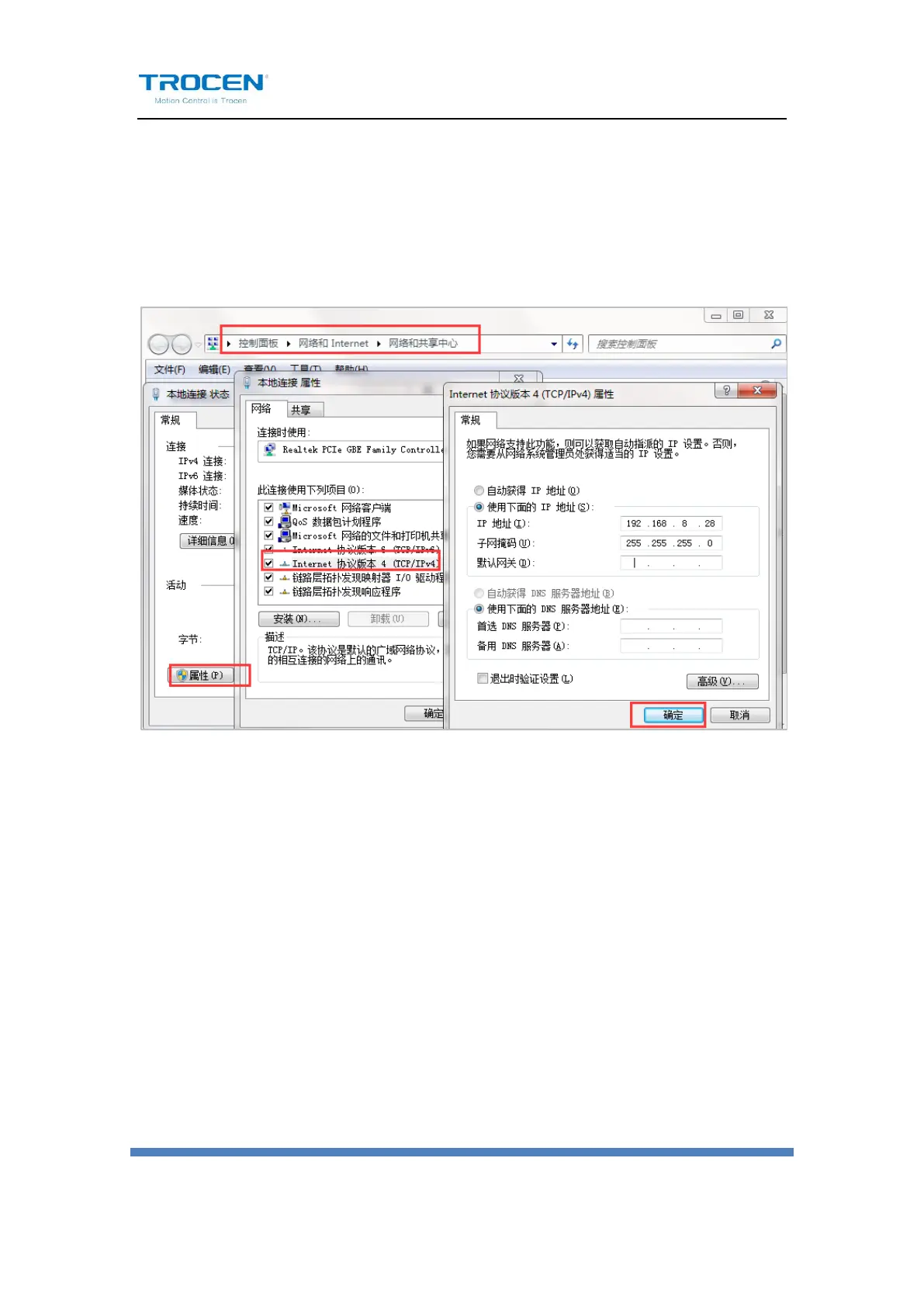 TCP/IPv4 option to open the IP address modification interface. Finally,