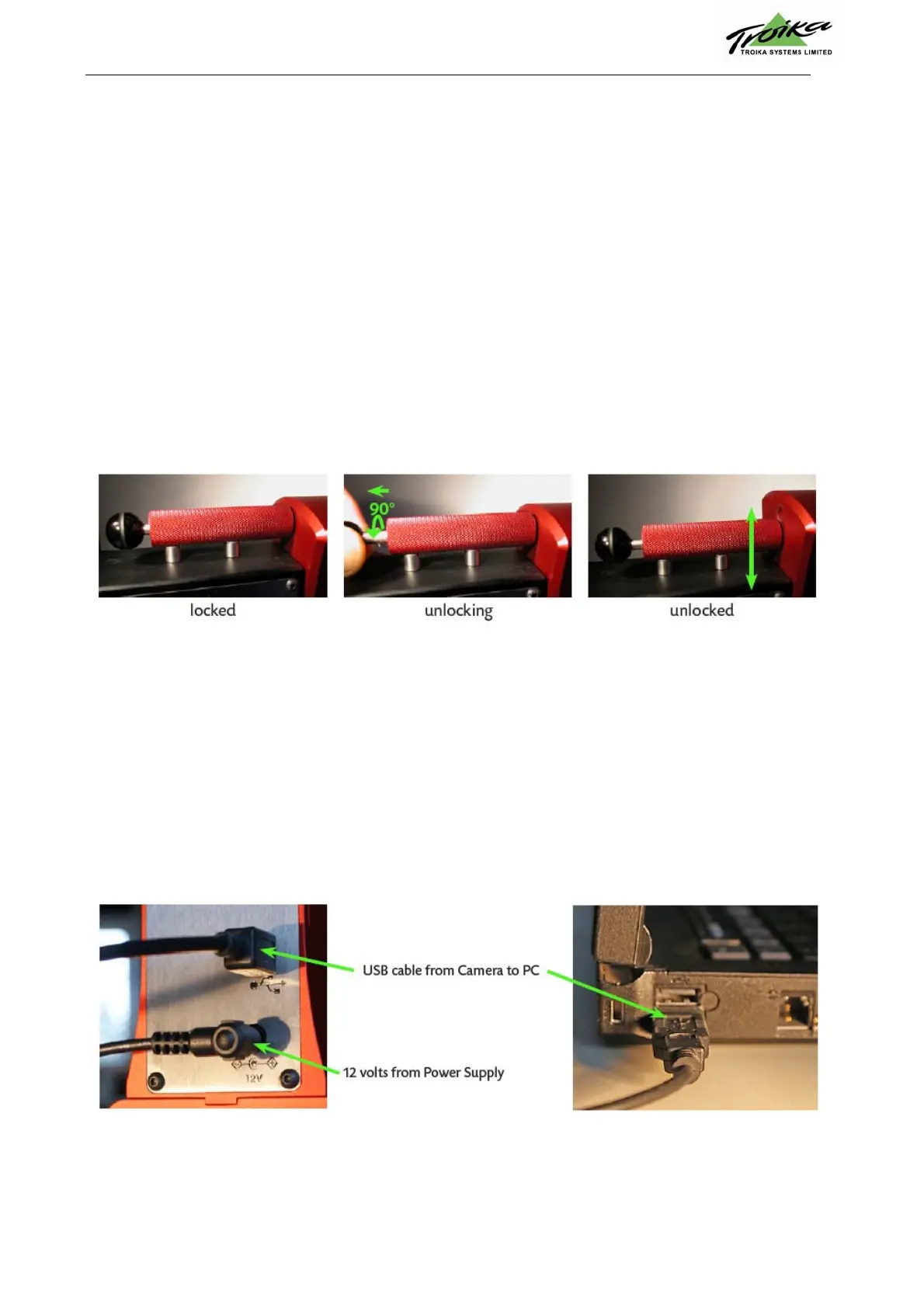 There is a transportation lock at the top of the camera which must be unlocked prior to operate the system.