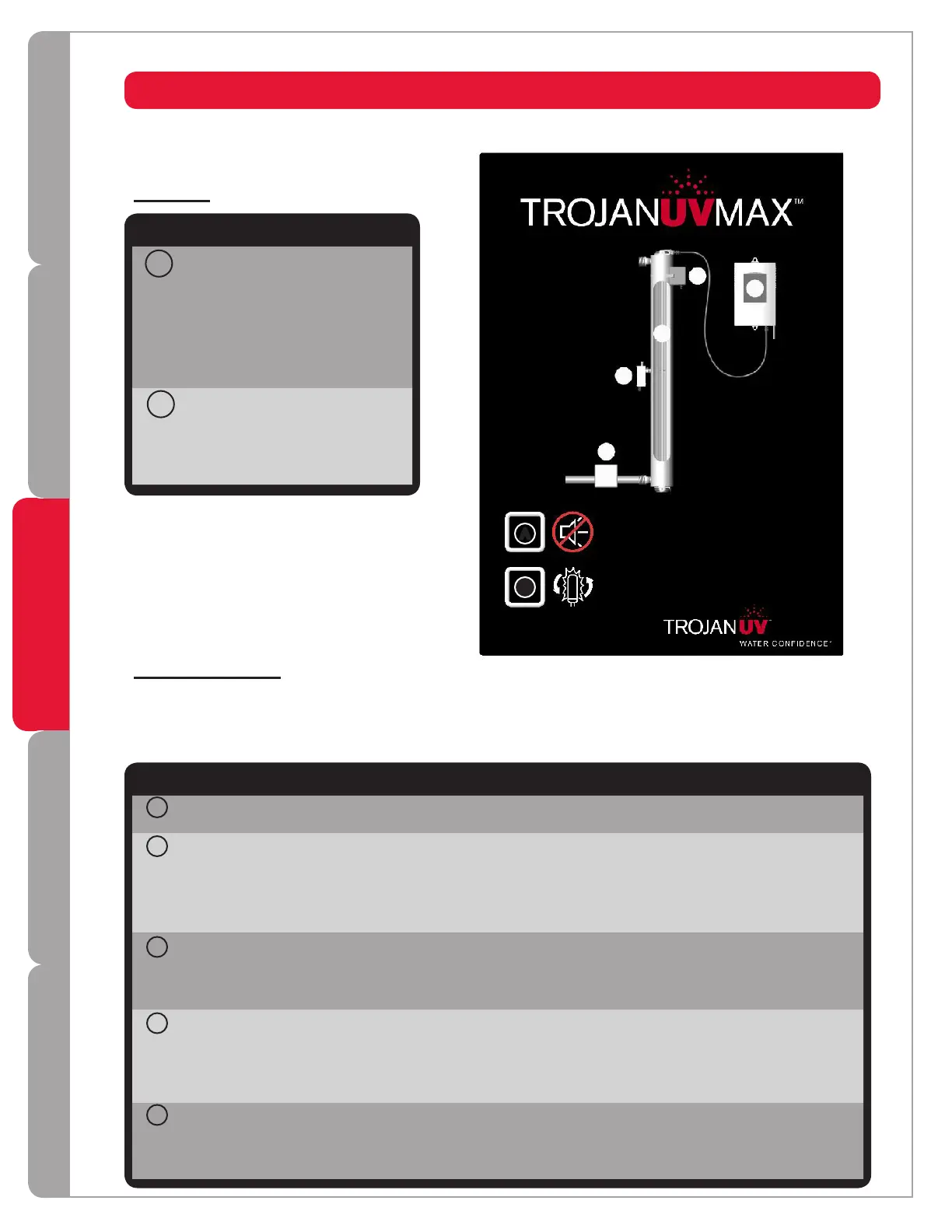 The table below is a list of possible causes and solutions. Before replacing parts, please contact Trojan Technical