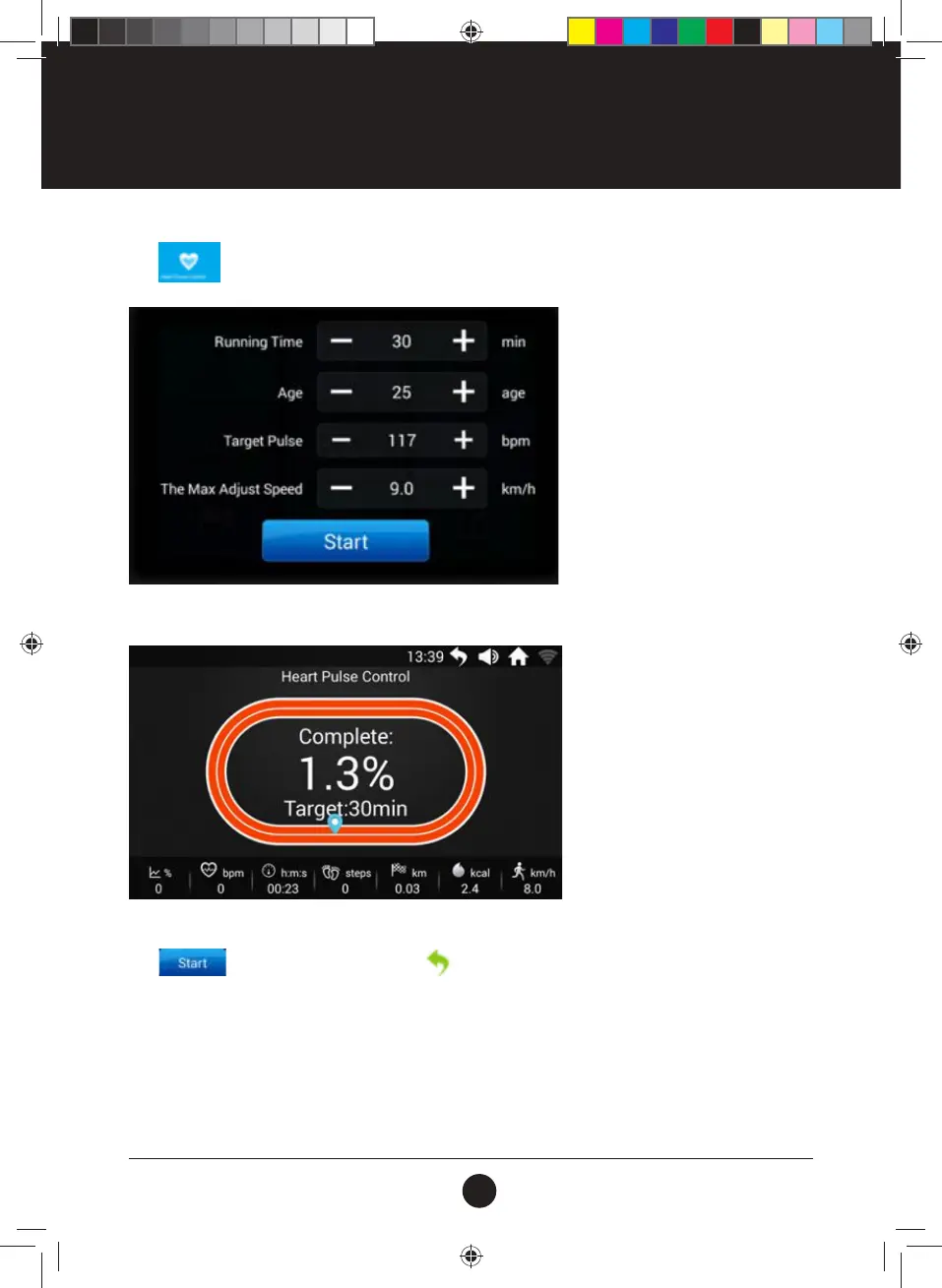 Set the parameters accordingly, then tap “Start” icon to start running;