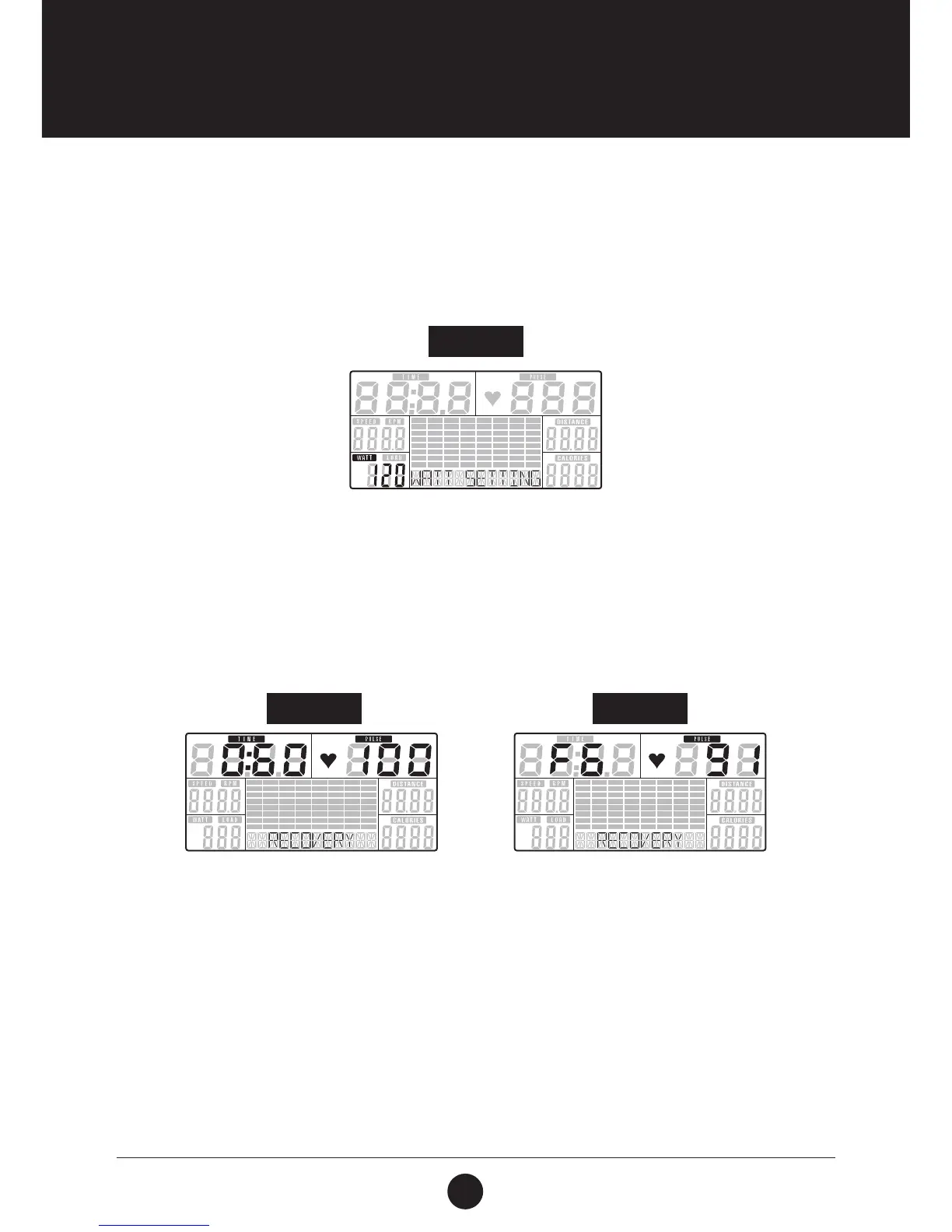 After exercising for a period, keep holding on hand grips or wearing chest strap and press RECOVERY key. All