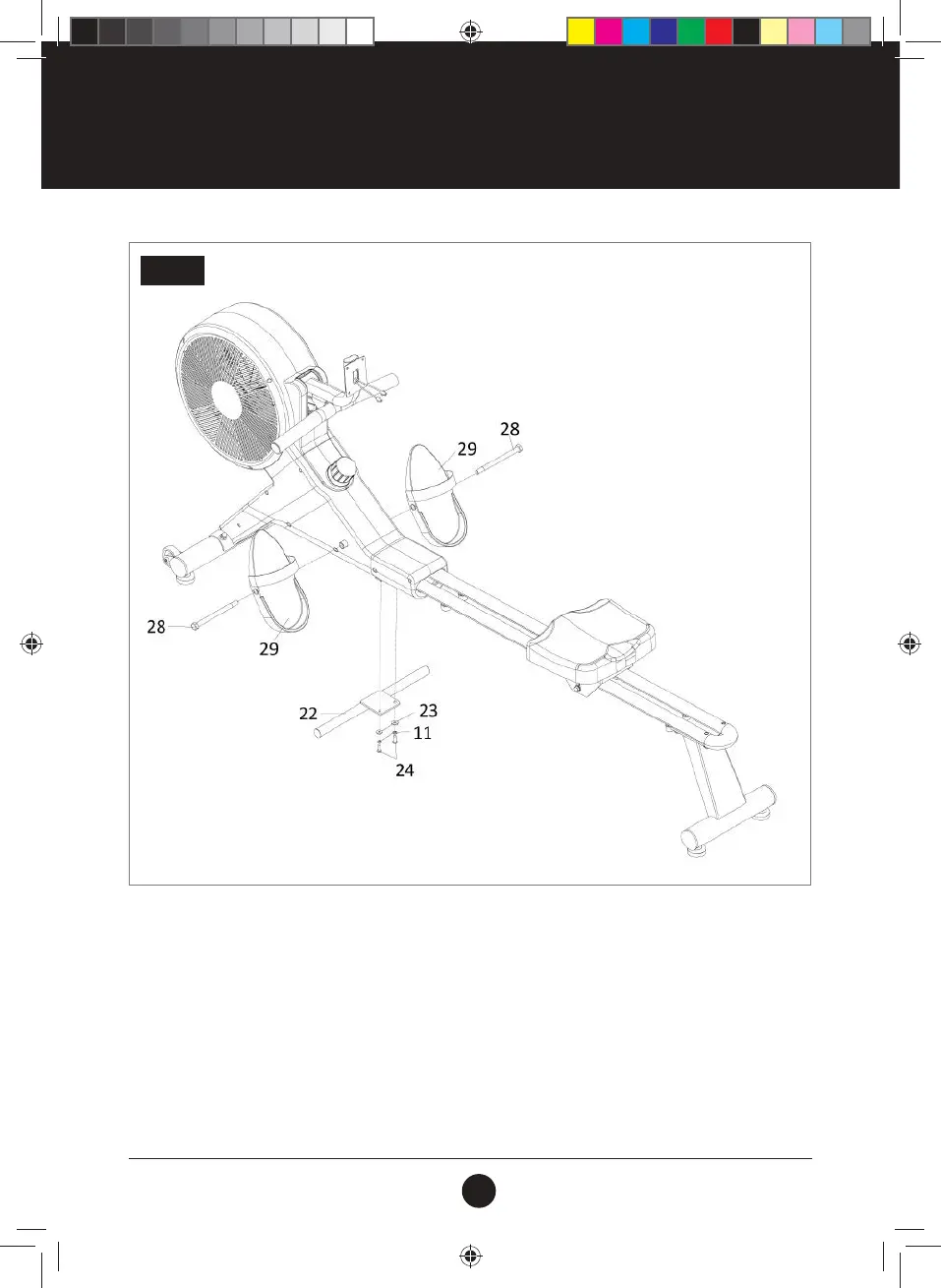 Fasten the Pedal Bolt (22) to Main Frame (27) with the 2 Spring Washers (11), 2 Bolts (24) and 2 Washers (23).
