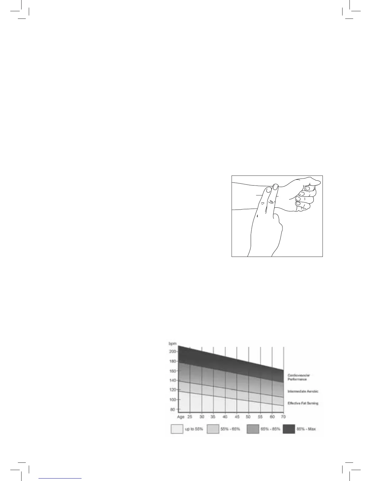 • Monitor your pulse frequently. Establish your target heart rate based on your age and condition.