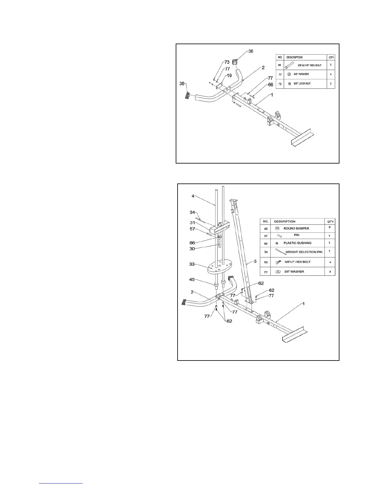 usingtwo3/8”x1”HexBolts(62)andtwo