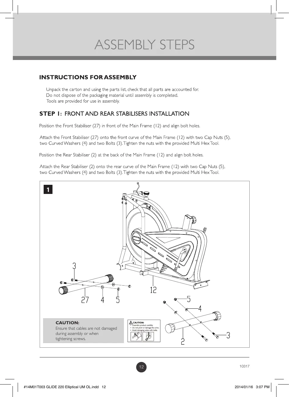Trojan GLIDE CYCLE 220 - Trojan Glide Cycle 220 Assembly Instructions; Step 1: Front and Rear Stabilisers Installation