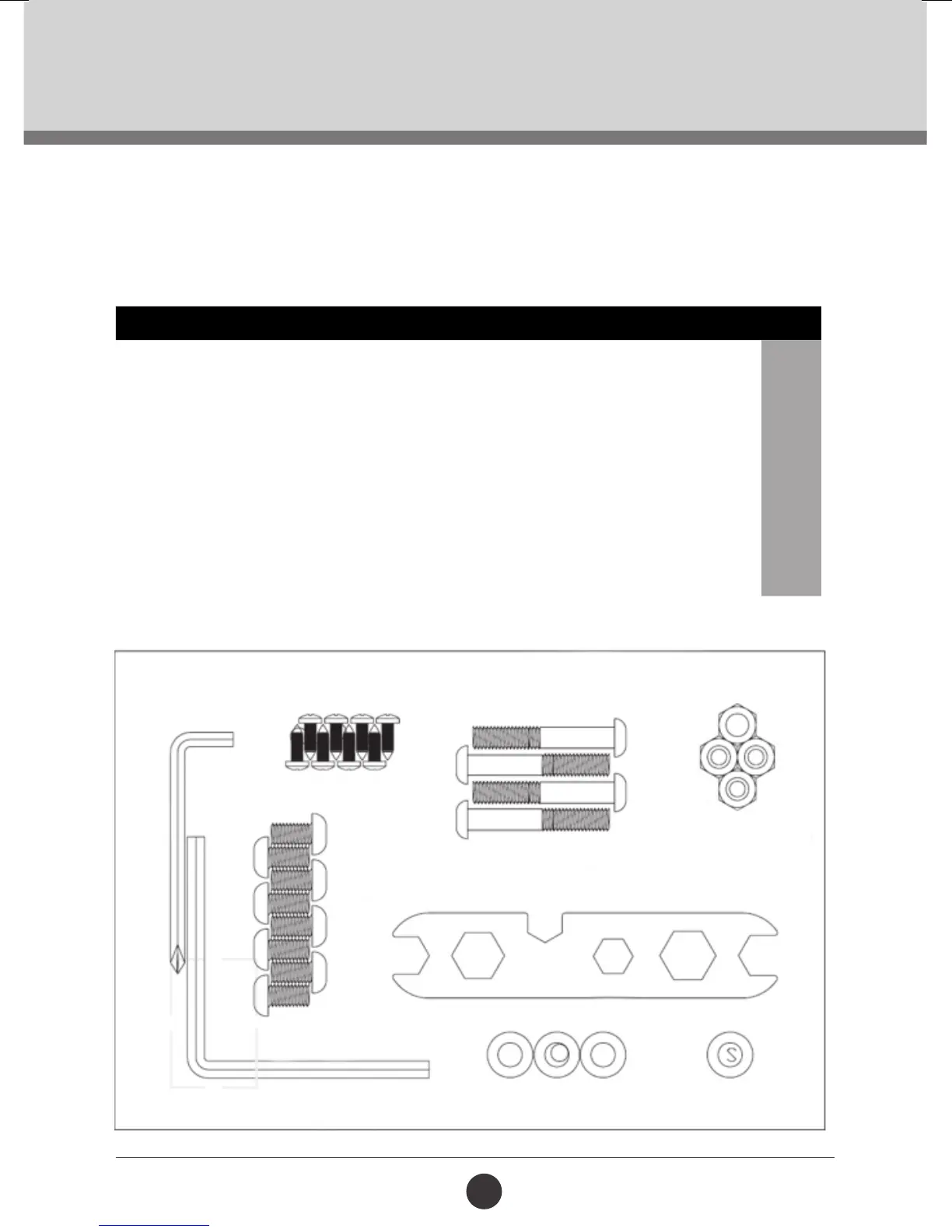 • Basic tools, such as spanners will be required for assembly.