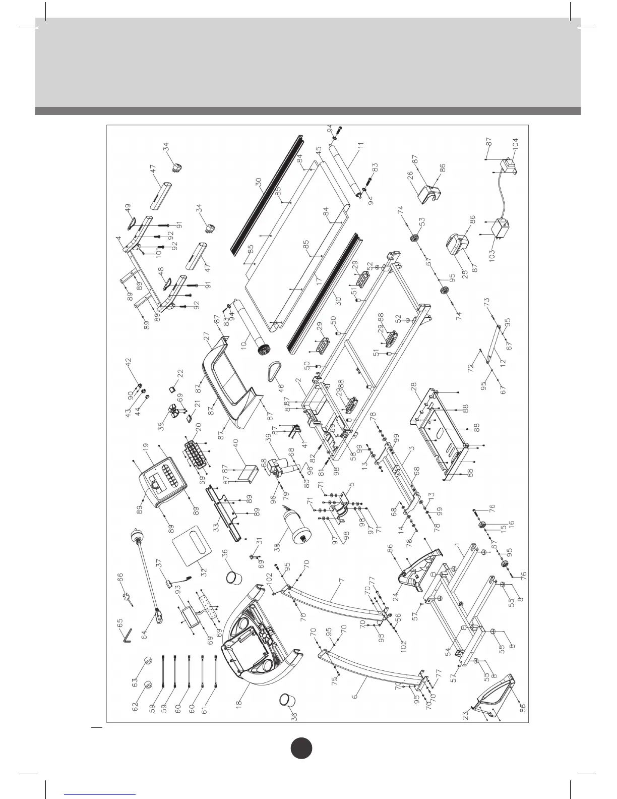 Trojan MOTION 360 - Exploded Drawing; Treadmill Assembly Diagram
