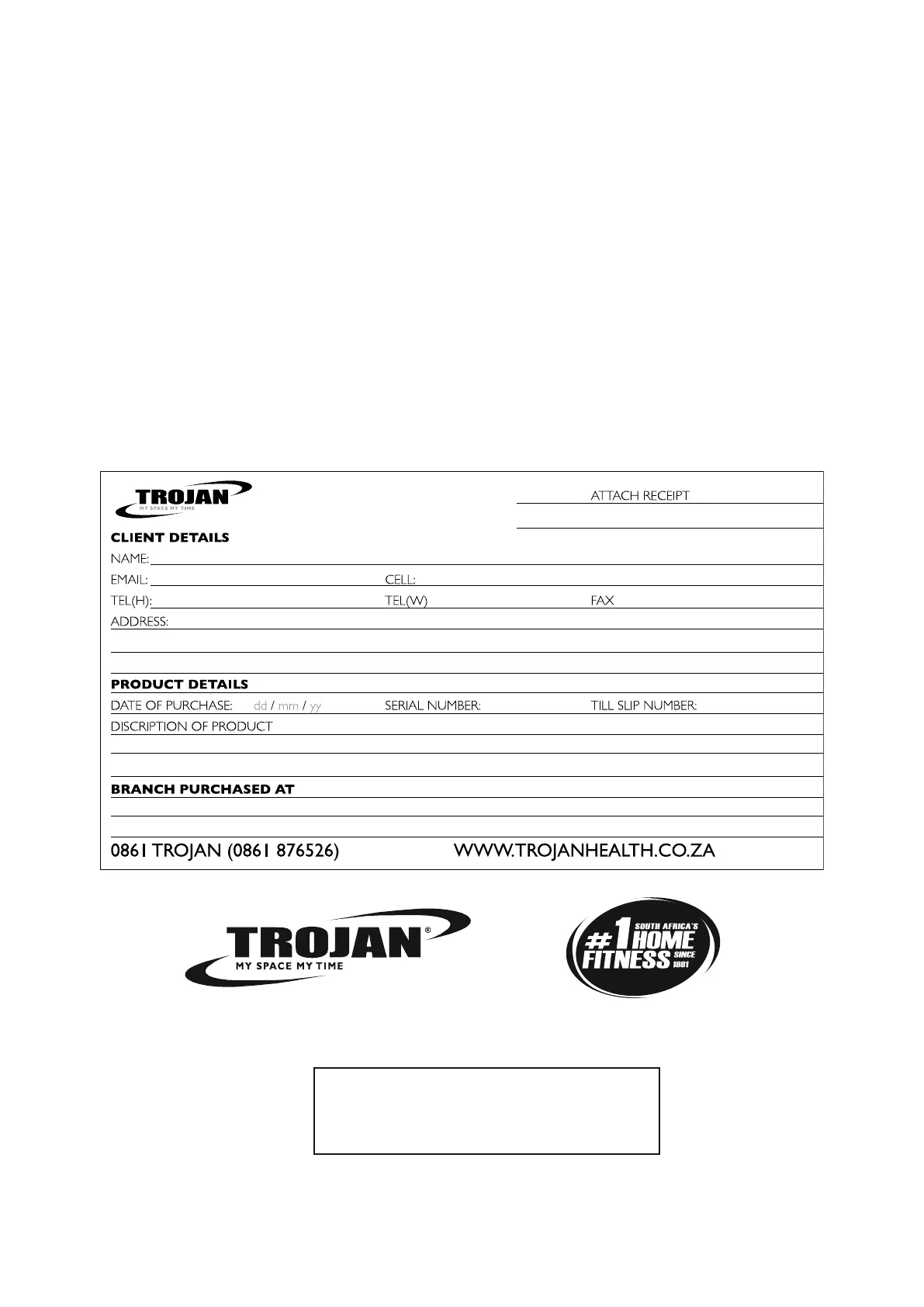 Warranty numbers can be issued through contacting our call centre on 0861 Trojan (0861 876 526),