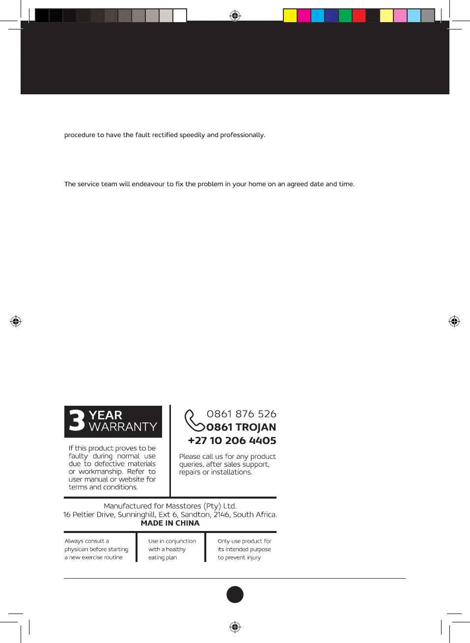 Call the Trojan Call Centre on 0861 876 526 to log the faulty product (under warranty or out of warranty).