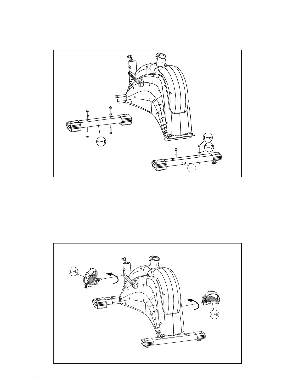 • Attach the Front Foot (F-1) and Rear Tube (G-1) to the front and back brackets of the mainframe