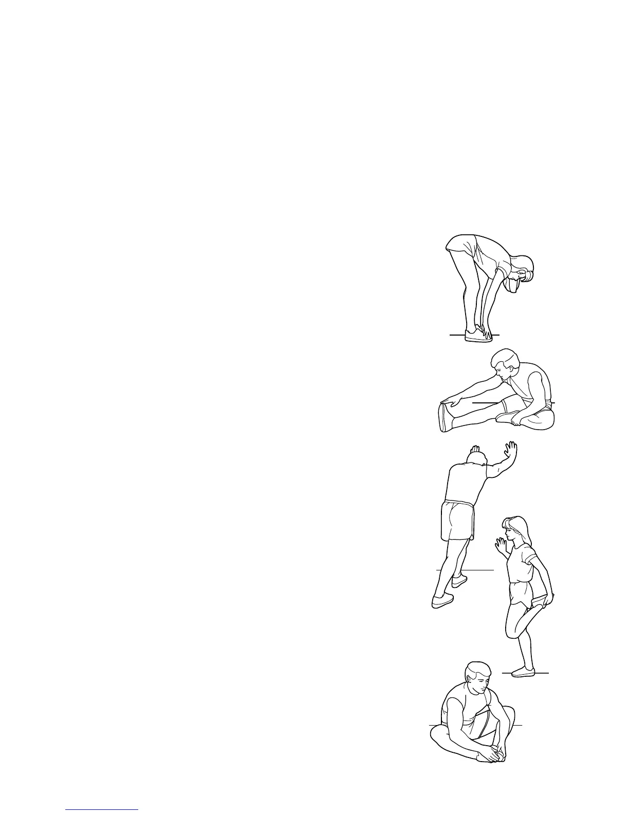 The correct form for several basic stretches is shown at the right. Move slowly as you