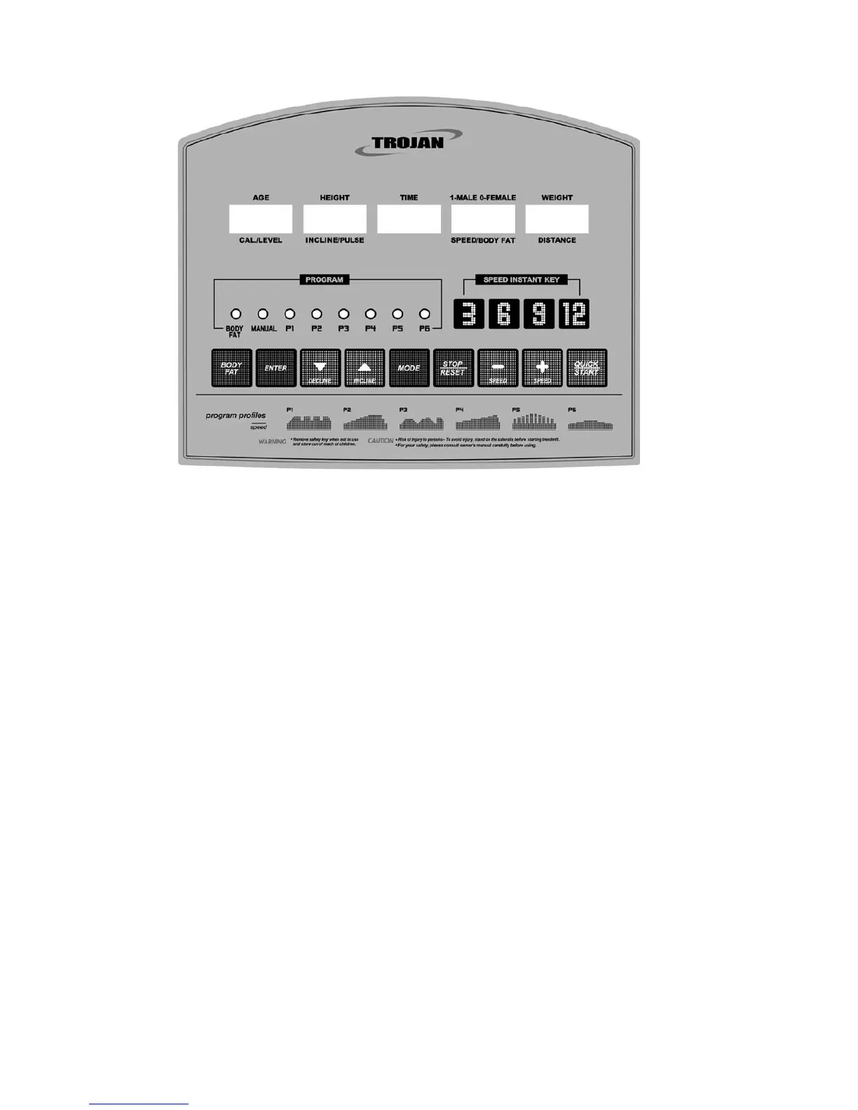 ** During work out, if the safely key is pulled off, the beeper will sound a warning, then the treadmill will come to a stop.