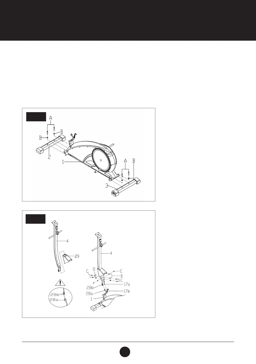 Frame (1) with 4 Bolts (C), 4 Washers (B)