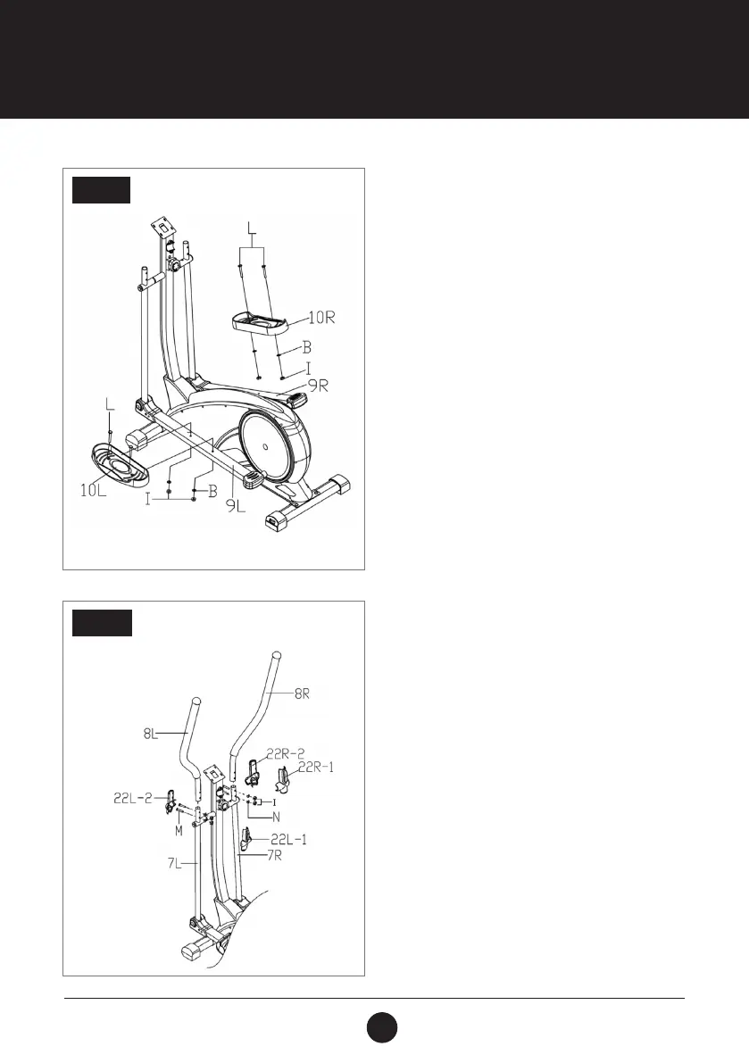 Bolts (L) and 2 Washers (B) and 2 Nuts (I).