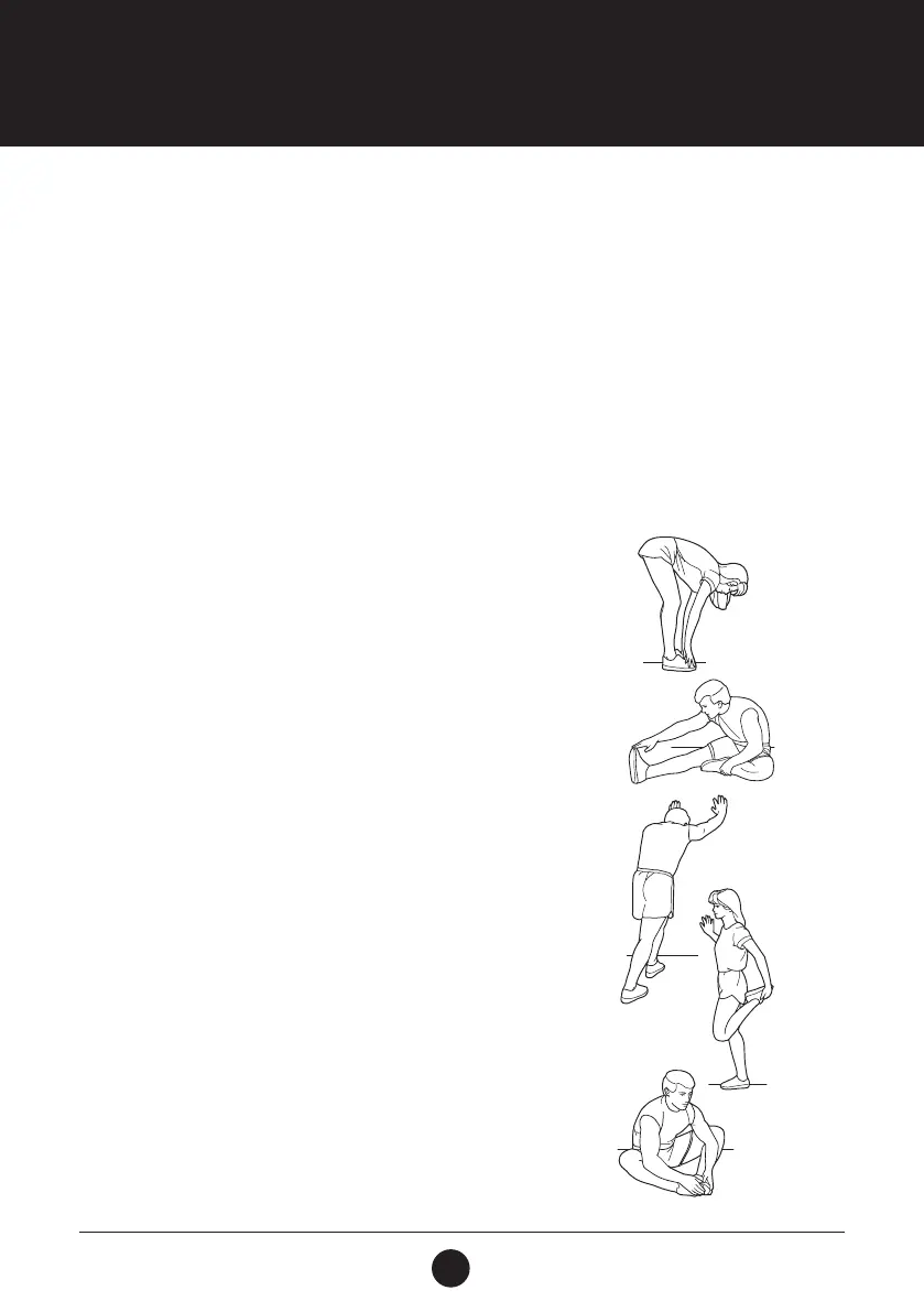 3. COOL-DOWN: 5 to 10 minutes of stretching. This will increase the exibility of your muscles