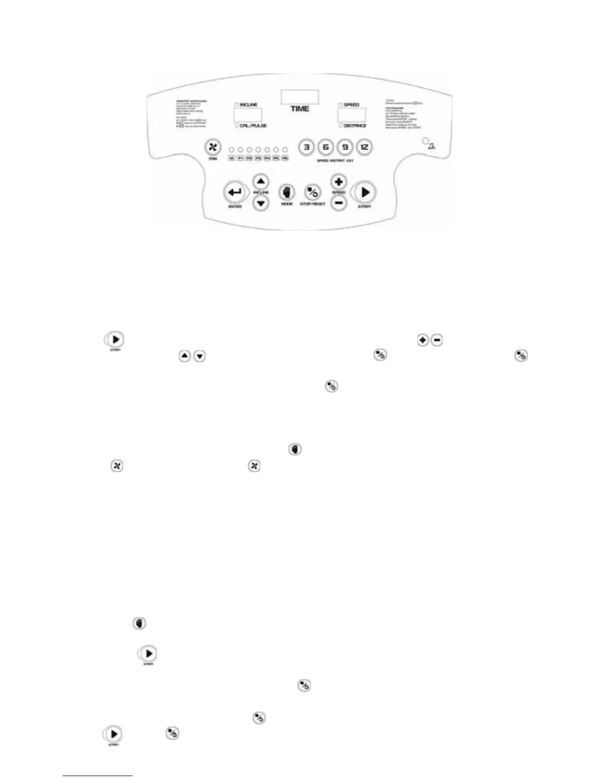 speed, or you can press to control the incline. When you press the treadmill will stop. (press