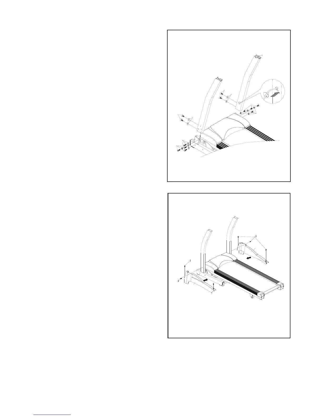 • Place the Uprights(C,D) on the Frame(B) and secure