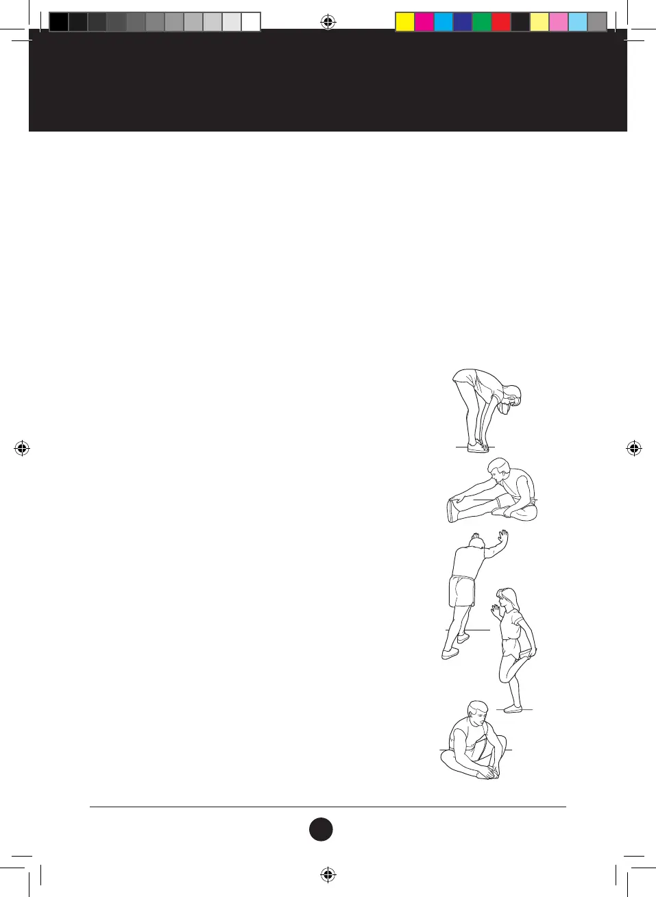 3. COOL-DOWN: 5 to 10 minutes of stretching. This will increase the exibility of your muscles