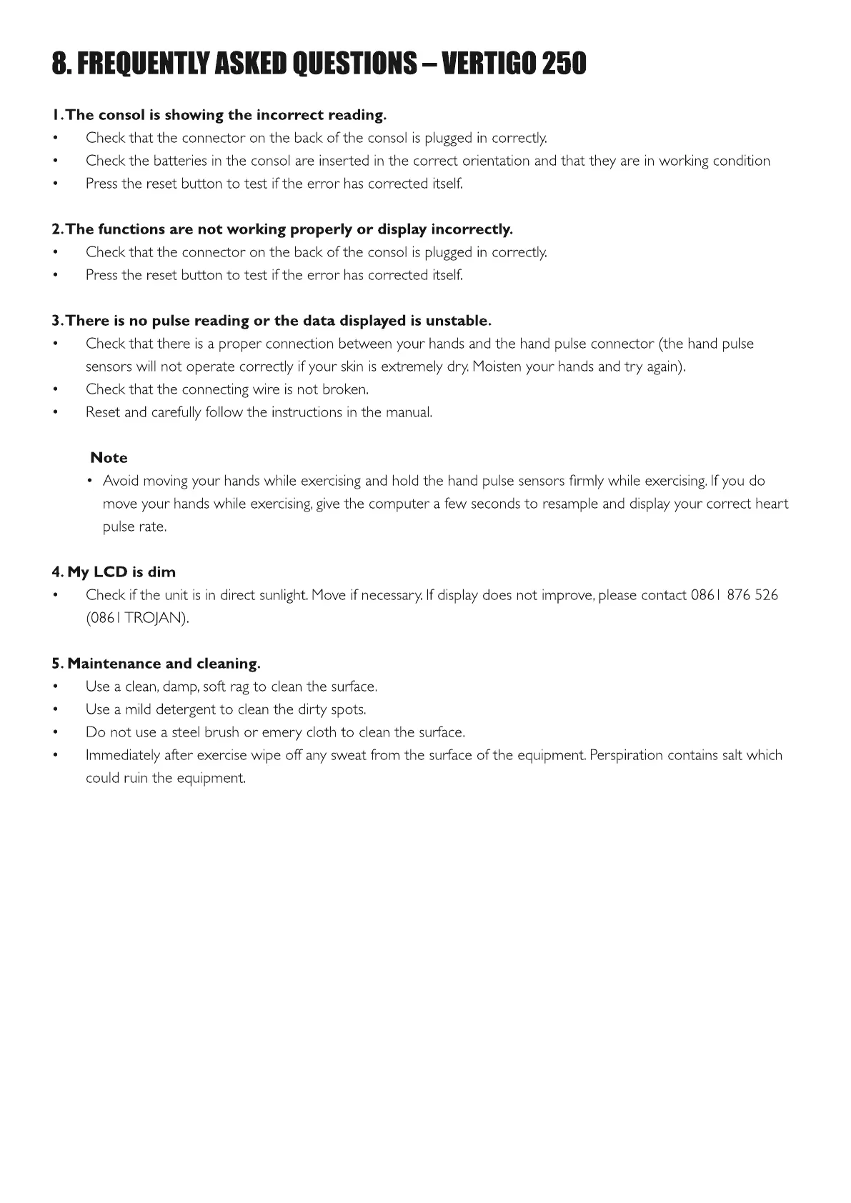 Trojan VERTIGO 250 - Frequently Asked Questions