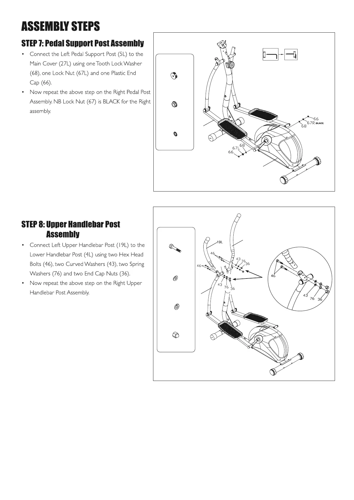Trojan VERTIGO 250 - Step 7: Pedal Support Post Assembly; Step 8: Upper Handlebar Post Assembly