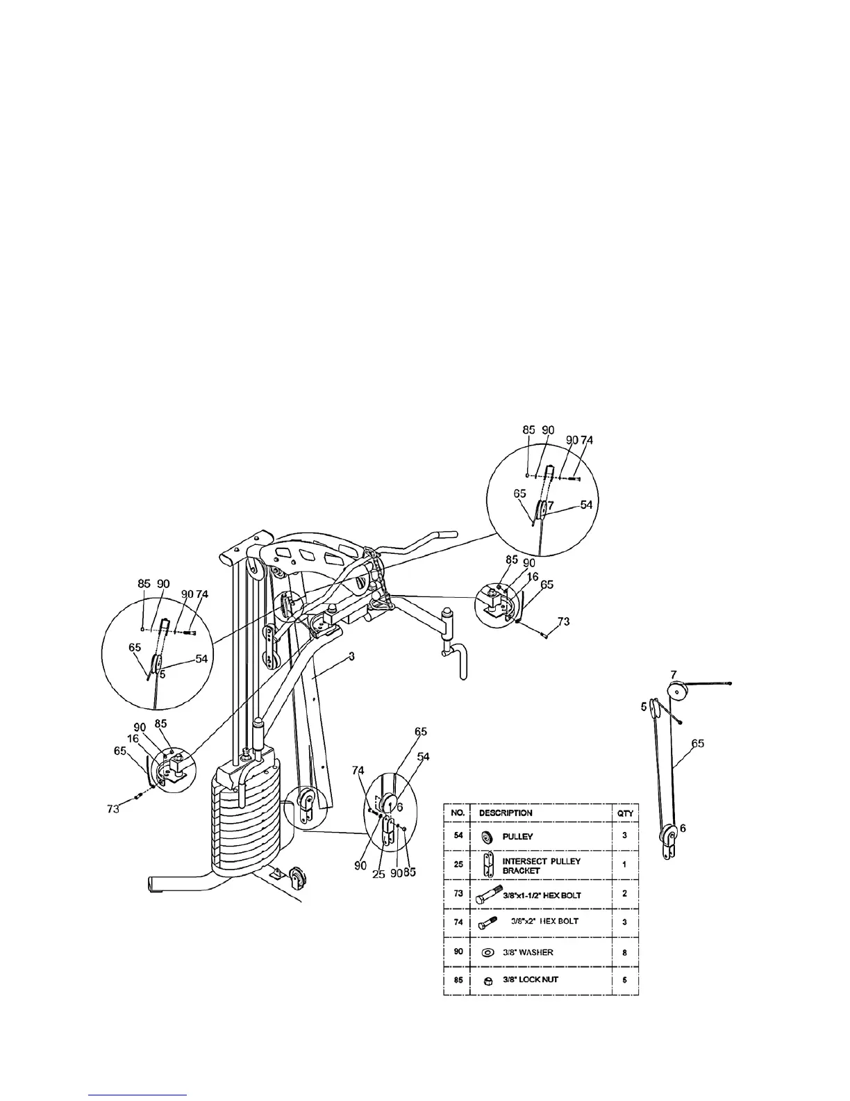 • WithButteryCable(65)ingrooveofPulley(54),installPulley(7)intoSinglePulleyBracket(23)usingone3/8”x2”
