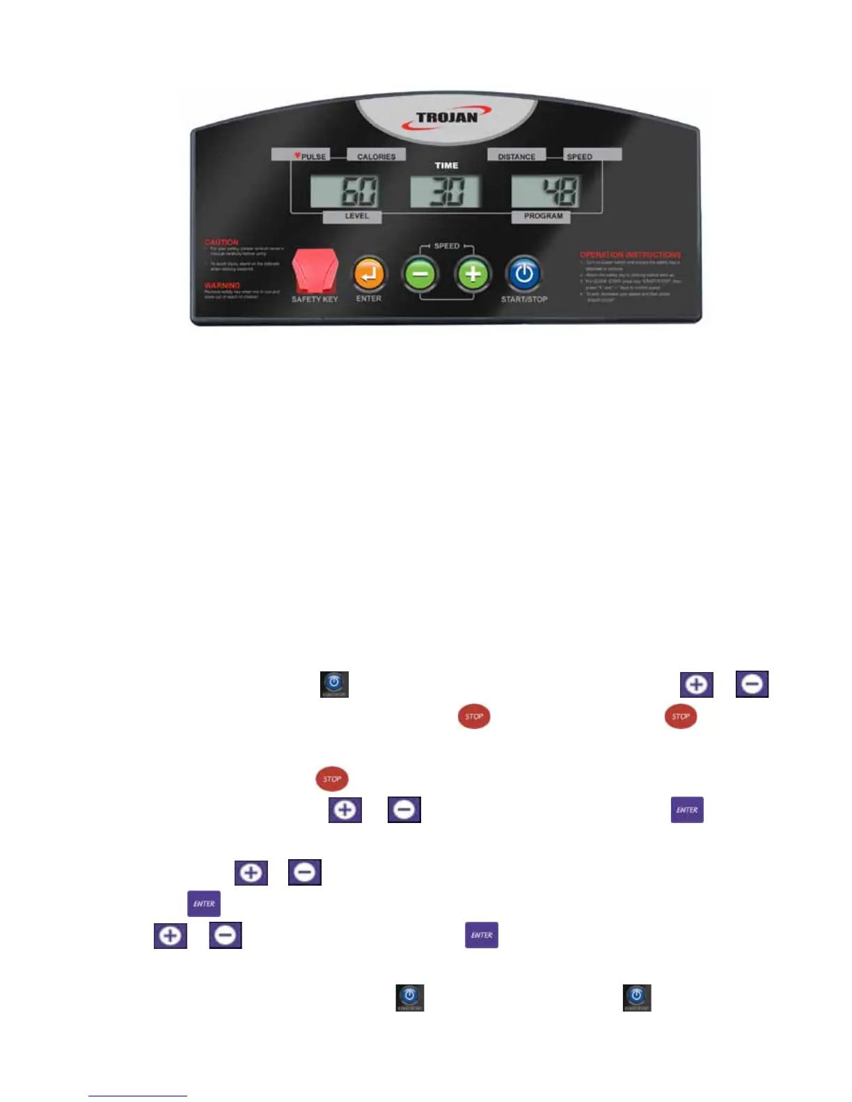 to increase or decrease the speed. When the user presses the treadmill will stop. Press once and all