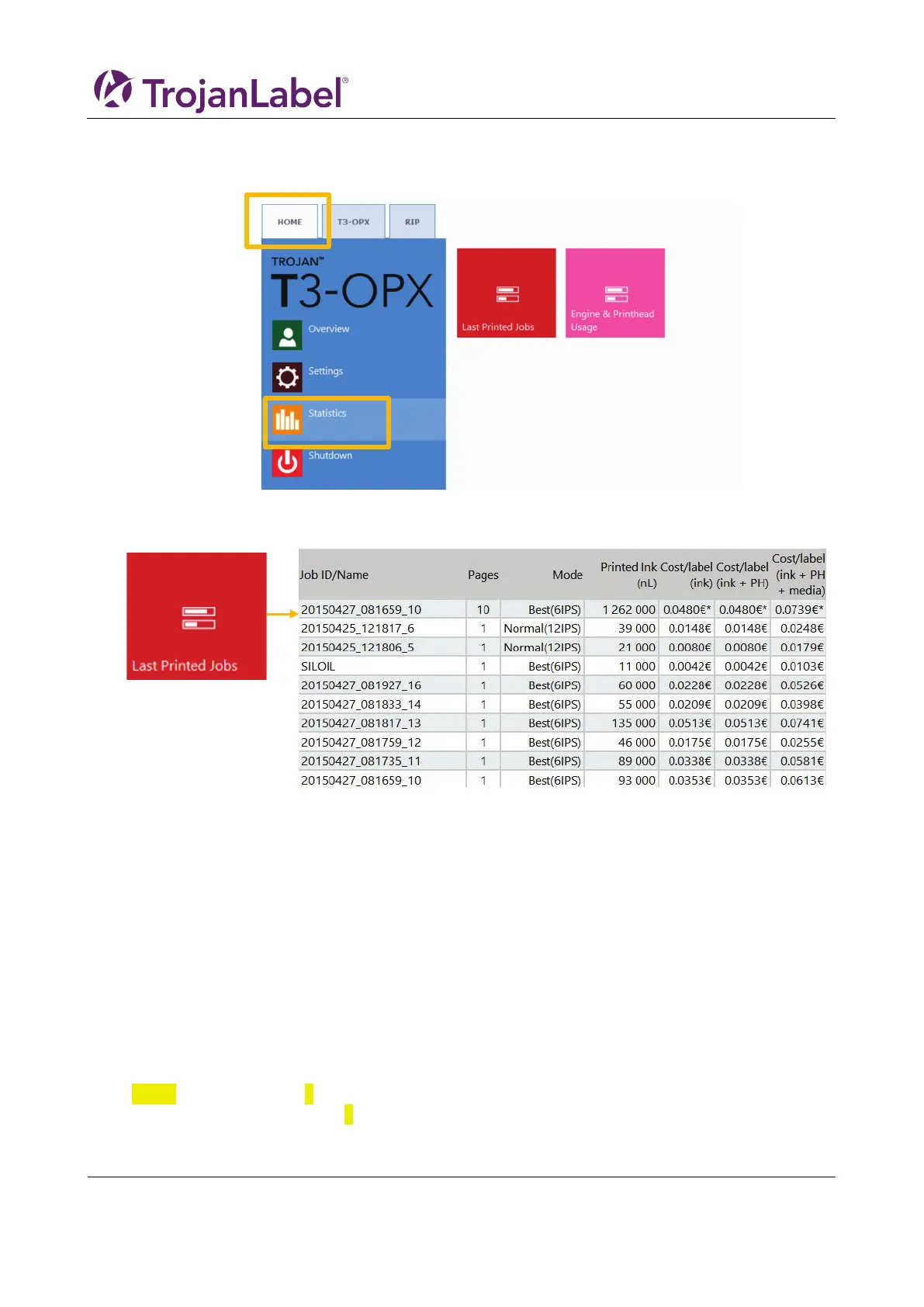 • Cost/label (ink only) calculation is the cost/1 label in the actual print job based on ink tank price