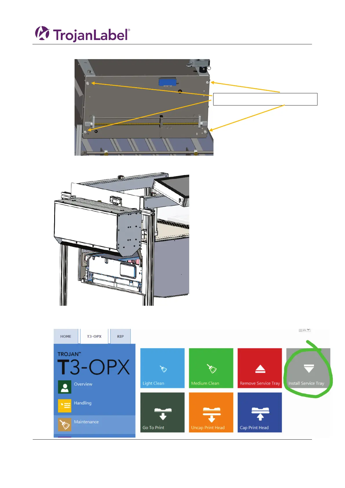 10. Install the service tray, by pressing it back into position.Press install Service Tray