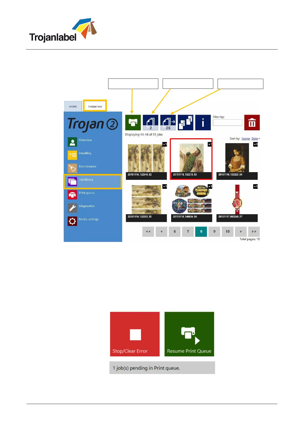 or the ‘Print from Page’ button (printing job from a certain page number).