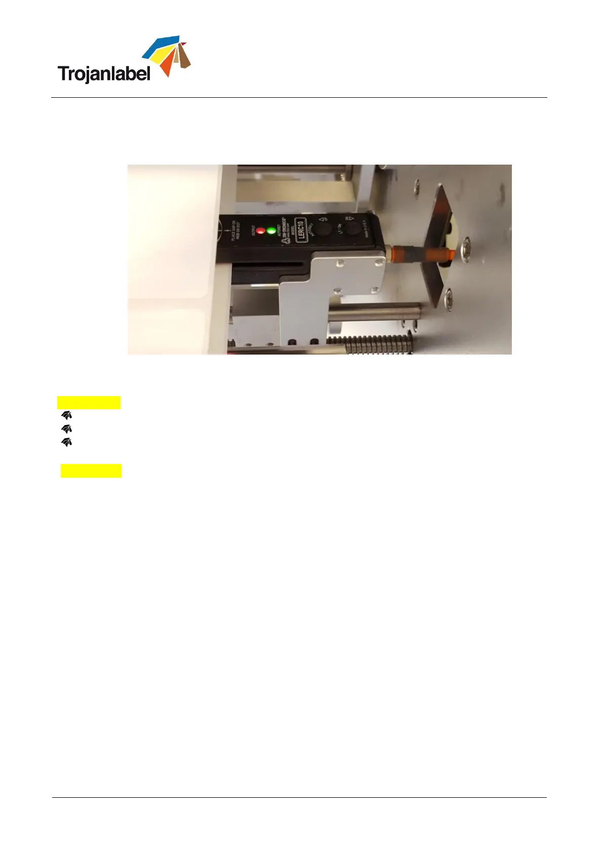 When moving a label (not gap) into the sensor beam the red LED will go on indicating that the